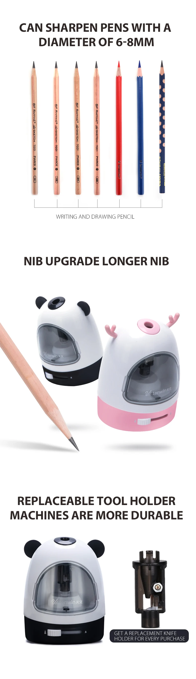 Электрическая точилка для карандашей Tenwin, многофункциональная Автоматическая точилка для карандашей сделай сам, Канцтовары, школьные принадлежности