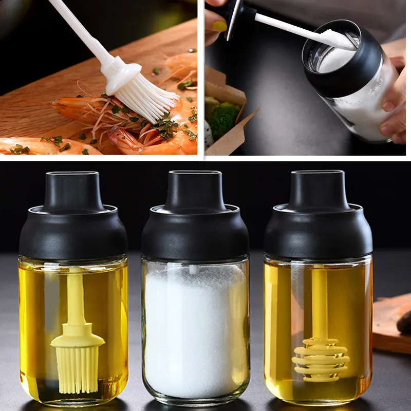 Емкость для специй, колпачок для ложки, Герметичная Бутылка для приправ, ПП + силикон + стекло для газировки, кухонная бытовая банка для приправ, крышка ложки, встроенная щетка