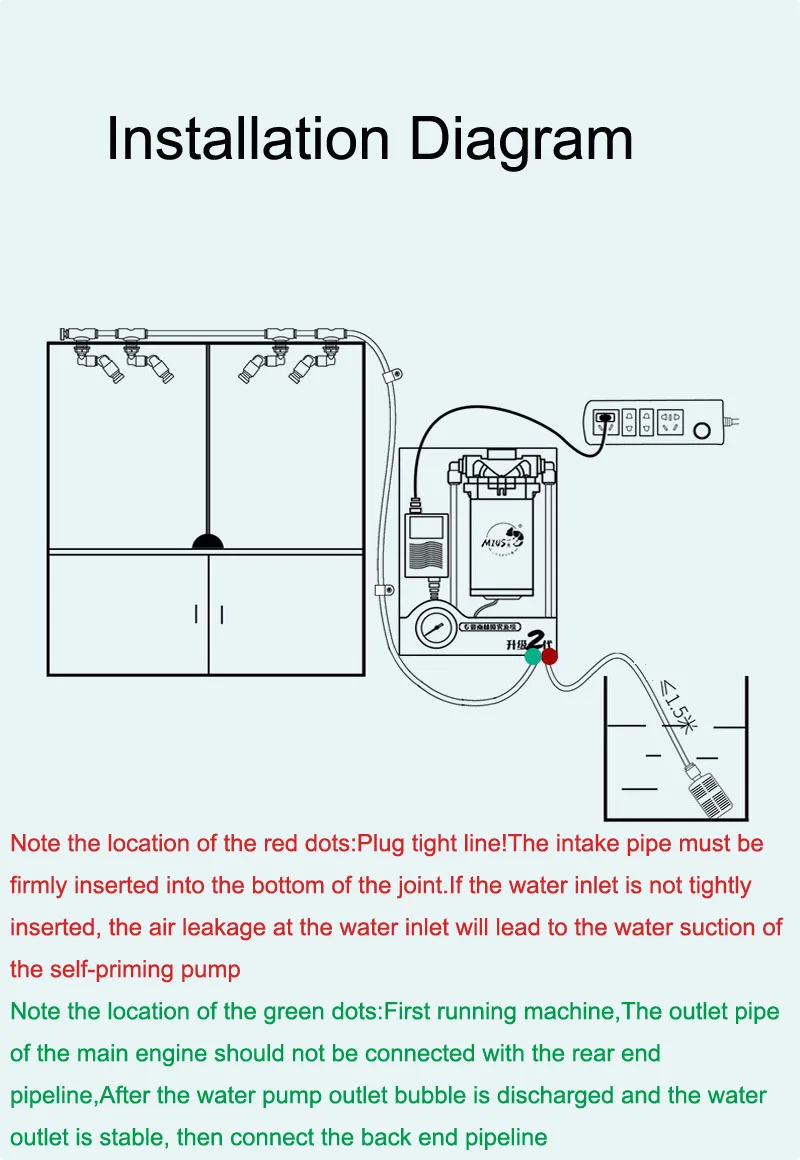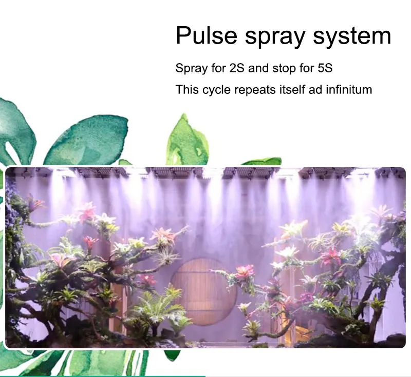 Набор распылителей для аквариума DIYПрост в использовании и Прост в сборкеЗапотевание для сада и теплицыОн может распылять много типов растений одновременно2S on 5S off, туман не дрейфуетПродукт содержит аксессуары, необходимые для подключения