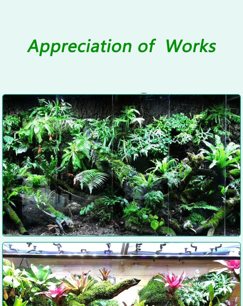 Каждый шарнир может вращаться на 360 градусов, что упрощает использование.360 Регулируемый универсальный шарнир с насадками может образовывать тонкий туман. Их легко установить в верхней части террариума. Маленький размер, Скрытая установка, визуальные препятствия, не влияют на красоту пейзажа.Насадки изготовлены из прочной латуни и нержавеющей стали Герметичное, само-уплотнительное кольцо в комплекте с каждым соплом