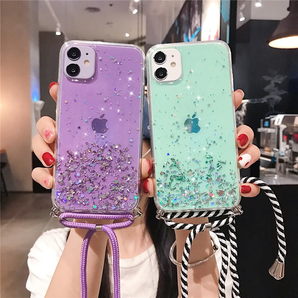 С ремешком на шею, веревочный шнур, прозрачный блеск чехол для теле...