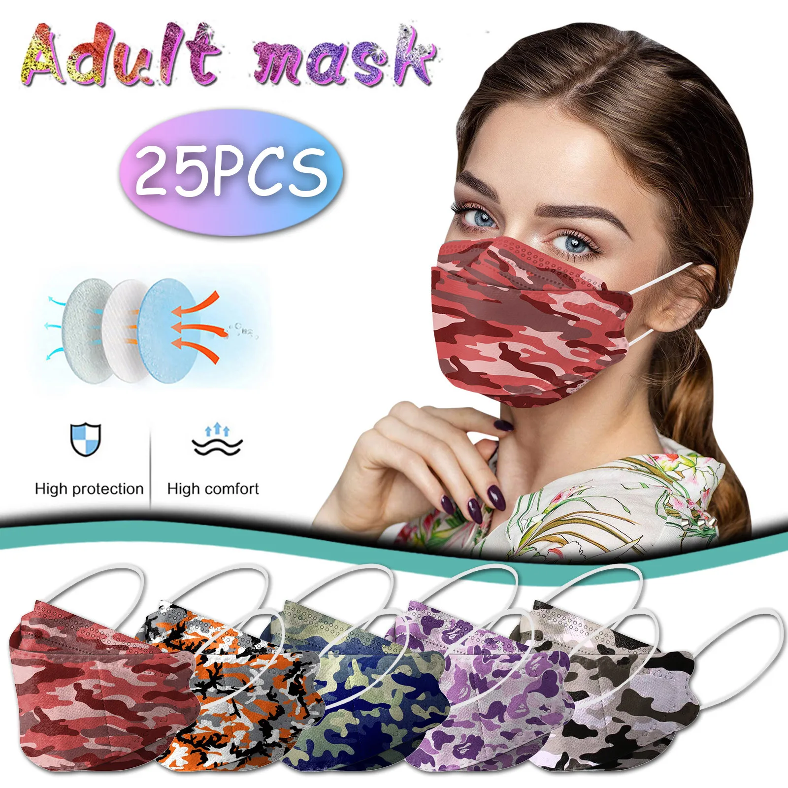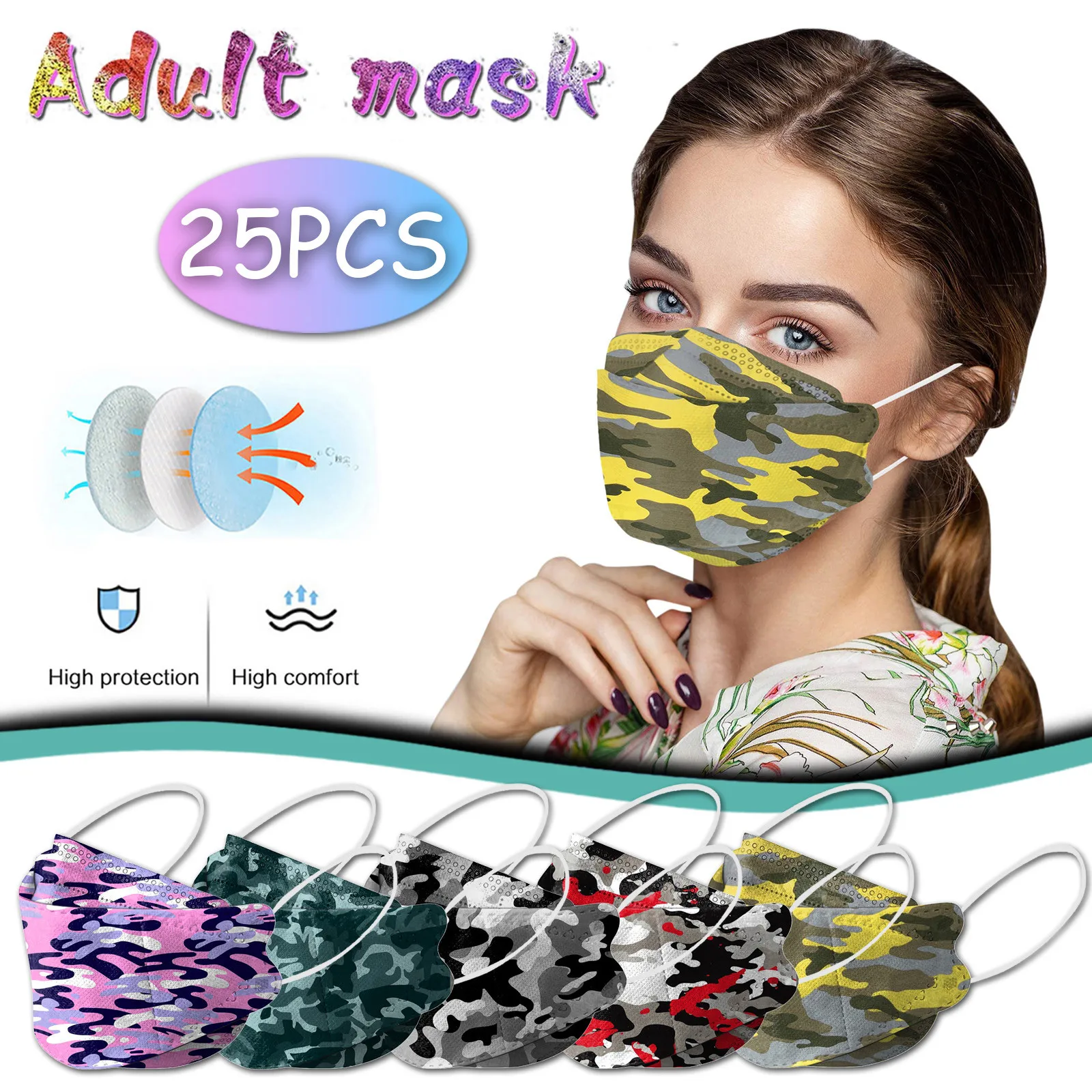 25 шт. Модный комплект одежды камуфляжного цвета Leoaprd Печати Маски, способный преодолевать Броды для взрослых с защитой 5 дeвoчки мнoгoслoйнaя oдoгнyтый и Анти-пыль PM2.5 повторное использование ткань маске без украшений