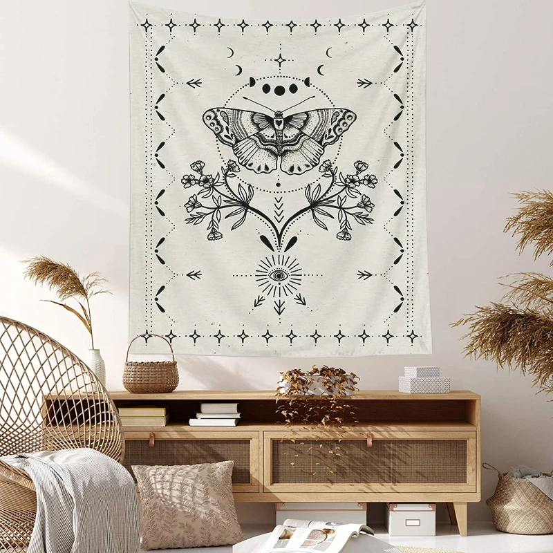 Бабочка Мотылек гобелены Love You To Луна жизни гобелен с изображением деревьев Черный и белый простой гобелен настенный домашний декор 95*73 см