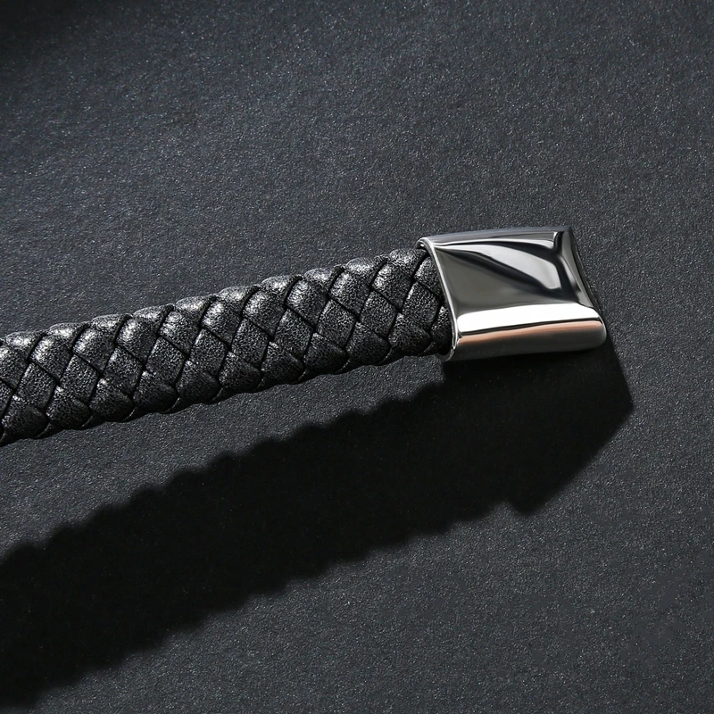 Браслет мужской кожаный плетеный, из нержавеющей стали, магнитный, ...