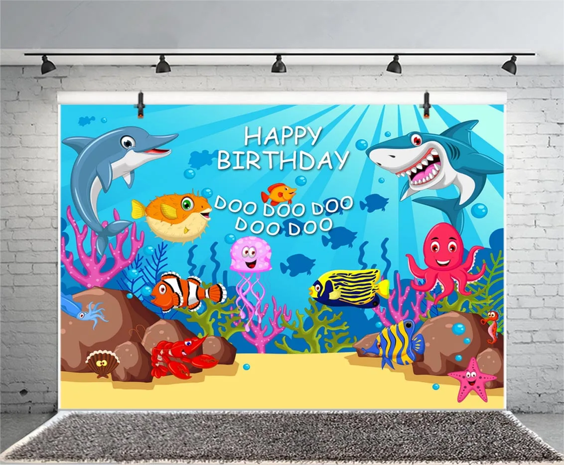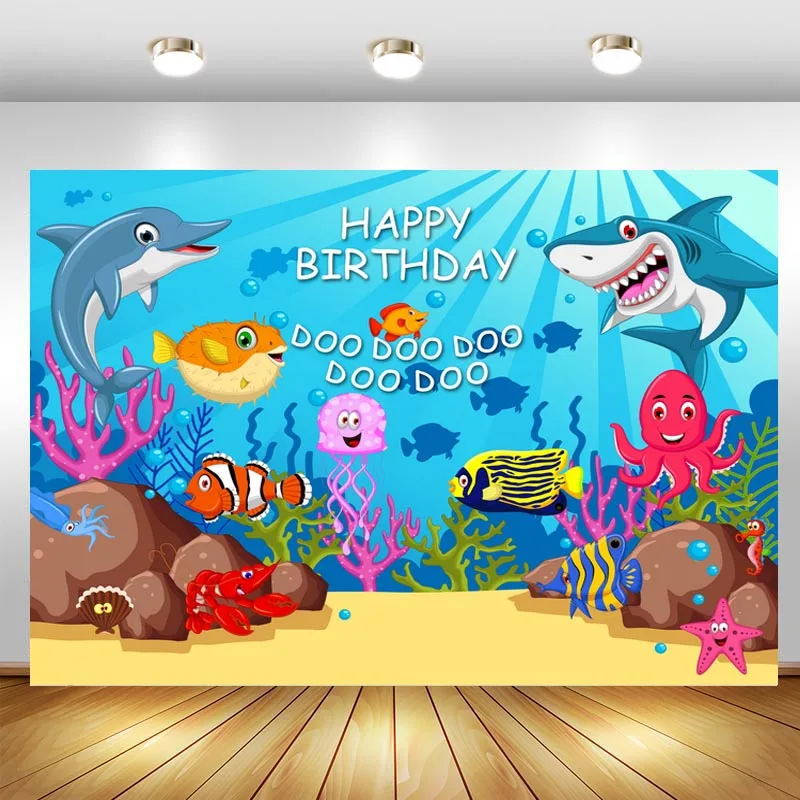 Подводный мир Акула фон ребенок день рождения настроить фото фон будки студия реквизит декоративный баннер