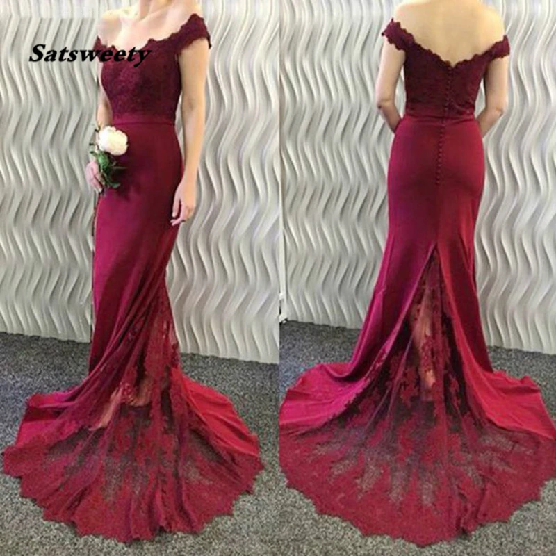 Бордовое кружевное платье для подружки невесты, высококачественное длинное вечернее платье с открытыми плечами и юбкой-годе