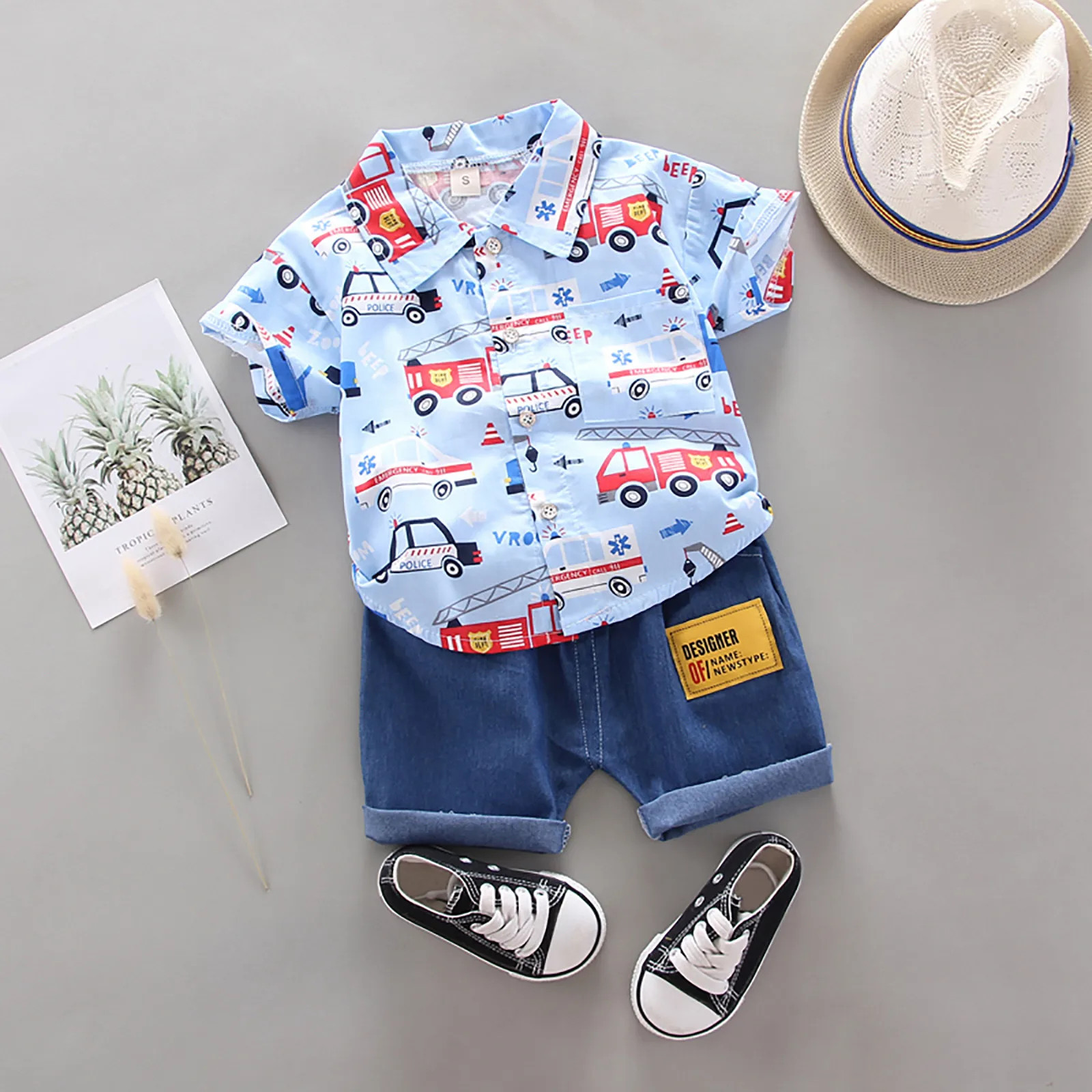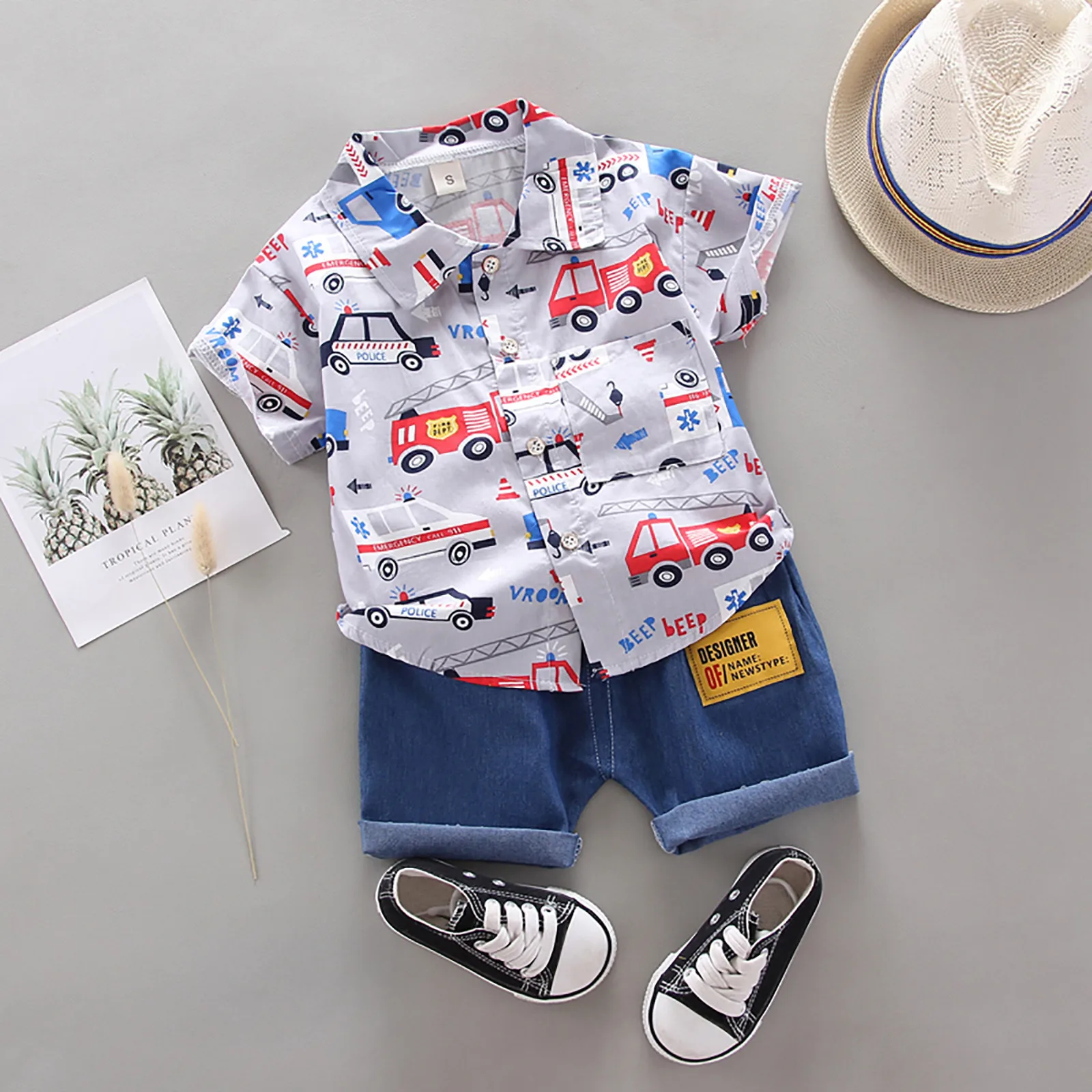 Комплект одежды для маленьких мальчиков 1-4 лет, футболка с рисунком и шорты, летние наряды