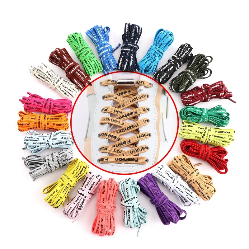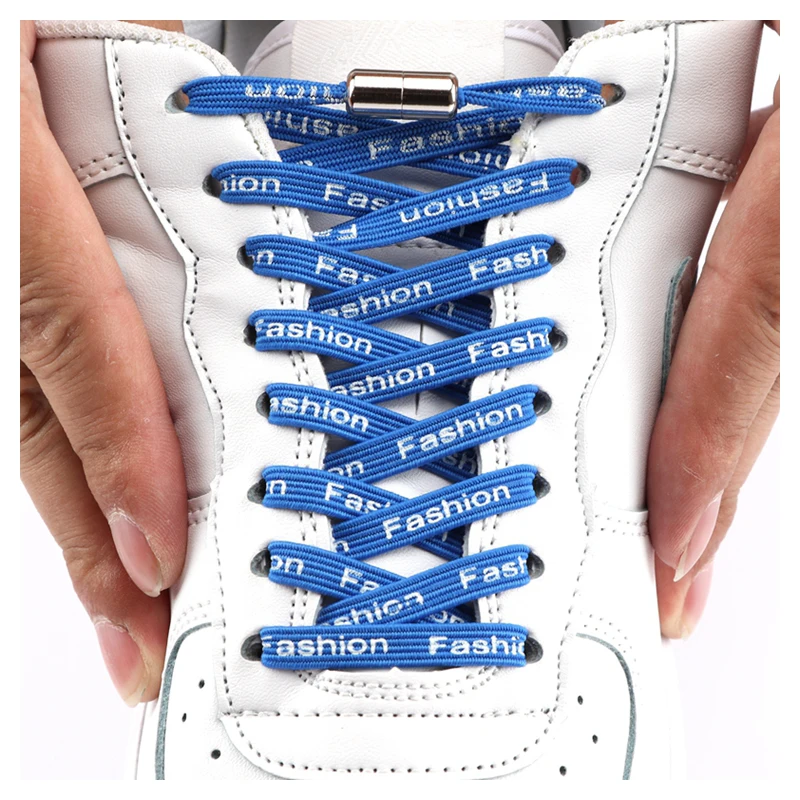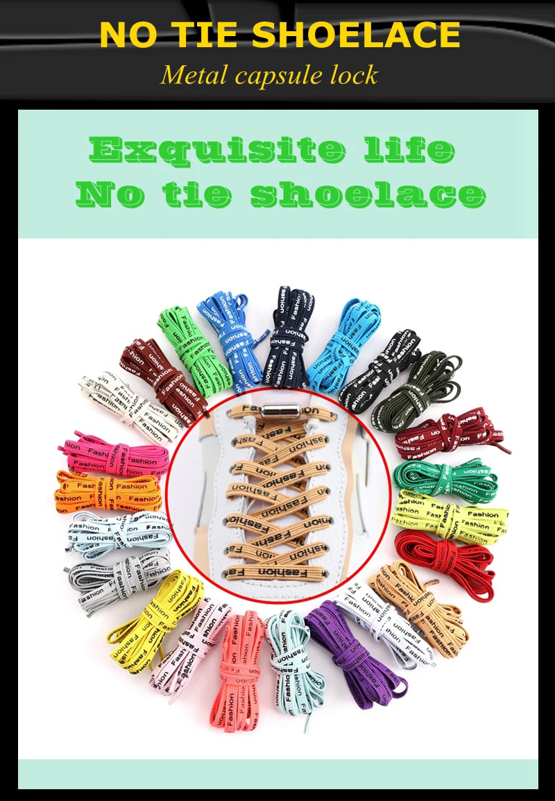 Плоские шнурки с надписью, 1 пара, эластичные круглые металлические, без завязывания, подходят для всех обуви, кроссовок, ленивых, 24 цвета