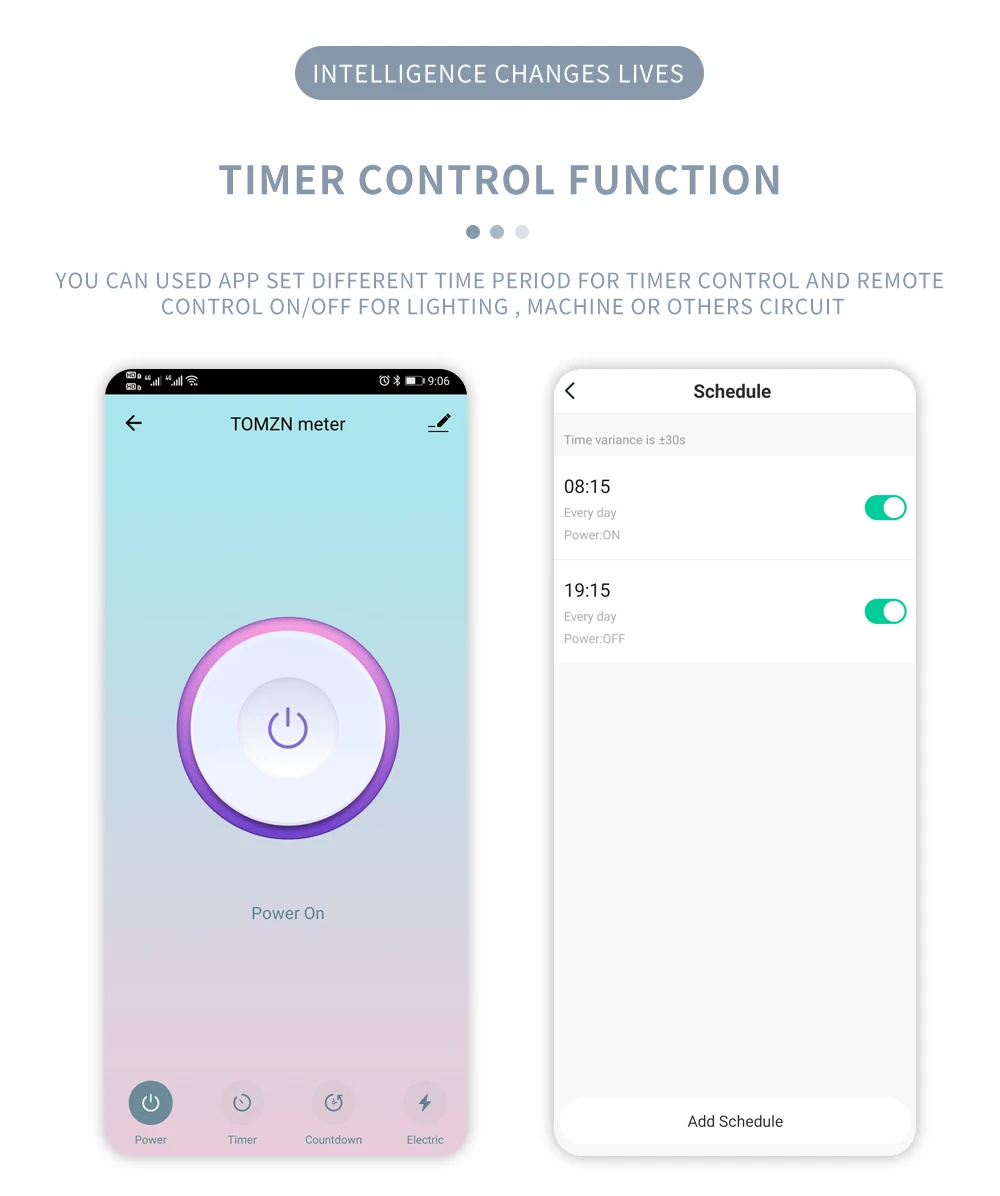 1. Дистанционное управление вкл/выкл через приложение Tuya или приложение Smart Life в любое время из любого места