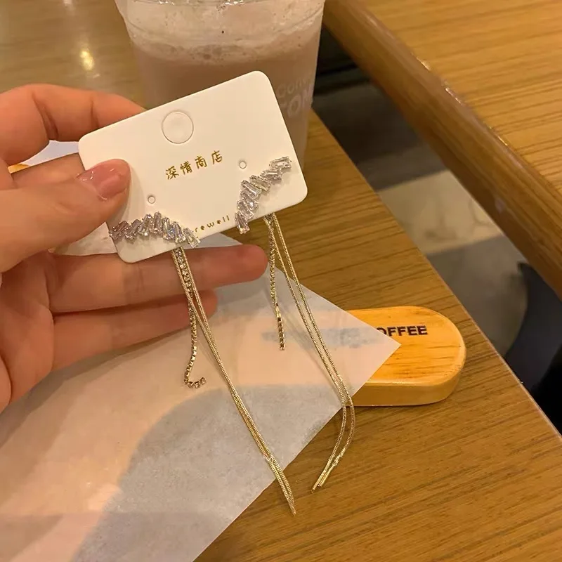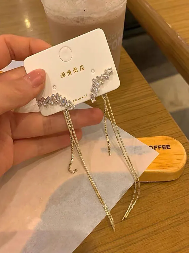 S925 серьги из чистого серебра Простые Модные Длинные циркониевые с...
