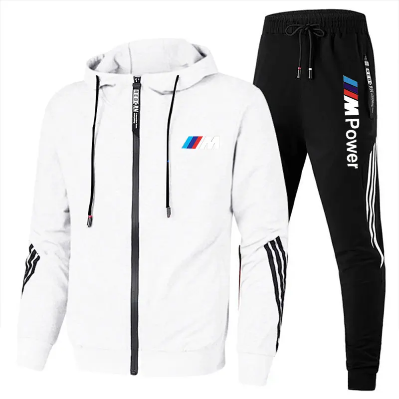 Мужской спортивный костюм BMW с капюшоном, повседневный костюм из двух предметов на молнии, подходит для бега и начинающих, хит продаж, 2021