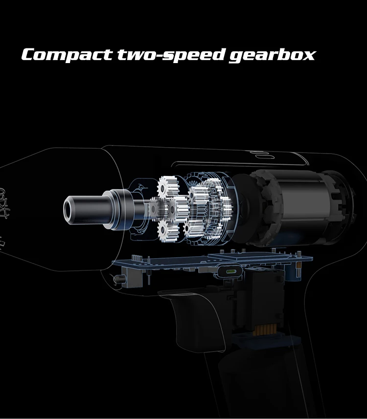 Сильный магнитный двигатель, супер крутящий момент 10 Н. m Сильный магнитный двигатель, цельнометаллический редуктор, обеспечивающий 10 Н. m1 сильный крутящий момент; Простая установка светильников, больших домов, электроприборов и т. Д. Без усилий. Особенности 1. Высокоскоростной и низкоскоростной переключатель в любое время, высокоскоростная скорость передачи составляет до 800 об/мин, легко справляется с различными потребностями бытового бурения 2. Прецизионная двухскоростная коробка передач, низкий уровень шума, меньший износ, Высокая долговечность, высокая коаксиальность, точная работа 3 светодиодный светодиодные индикаторы освещают рабочую зону, порт для зарядки Type-C 4. При использовании литиевой батареи 21700 Срок службы батареи на 40% дольше, чем у традиционной батареи 18650, емкость непрерывного разряда до 30 А Дополнительные удлинительные стержни из хромованадиевой стали, 5,8 шт. 6. Эргономичный дизайн, маленький и удобный для хранения Технические характеристики Напряжение: 3,6 В Емкость аккумулятора: 3000 мАч Время зарядки: 90-120 мин Скорость холостого хода: 0-230 / 0-800 об/мин Крутящий момент: 10 нм Максимальный диаметр зажимного сверла: 10 мм Максимальный размер винта (пробки): 5х 60 мм Емкость сверления по металлу: 5 мм (глубина 5 мм) Емкость сверления на пробке: 8 мм Вес всего станка: 0,52 кг Размер машины: около 150x45x160 мм