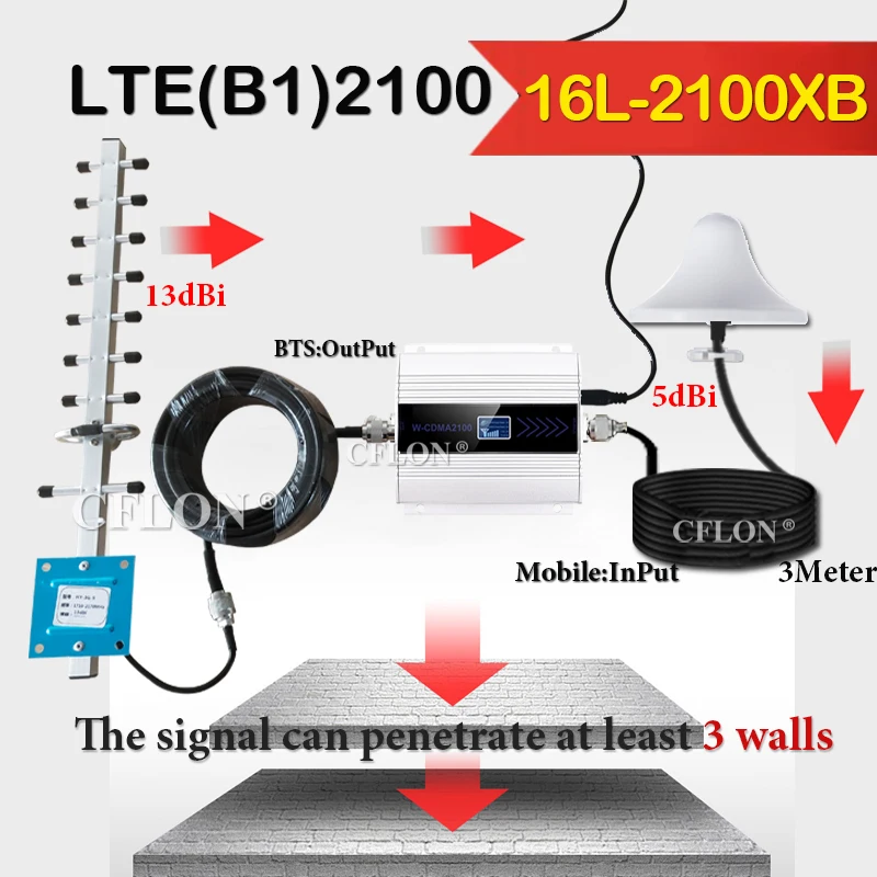 Что входит в комплект ----16L-2100XB = Band1 2100 + потолочная антенна с 3 м кабель + антенна Yagi + 10 м кабель + Питание;Только 2100 усилитель = Band1 2100 3G усилитель сигнала + источник питания;