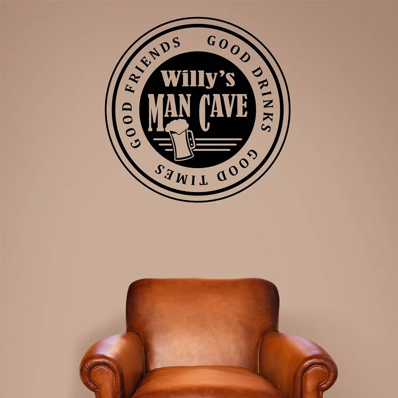 Настраиваемые настенные наклейки с названием "пещера", наклейки на стену для паба, вечеринки, бара, магазина, знака на столешницу, виниловые украшения для дверей, подарки для мужчин