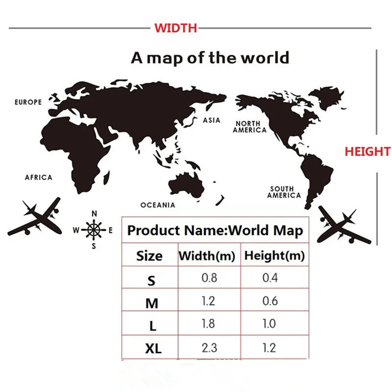 Название товара: настенные наклейки с картой мира Рисунок: карта мира Материал: акрил Цвета: черный Применение: Очистите стены или любую другую плоскую поверхность Размеры: S (Ш * В): около 0,8*0,4 м; М (Ш * В): около 1,2*0,6 м; L (Ш * В): около 1,8*1 м; XL (Ш * В): около 2,3*1,2 м; Примечание: 1. Не представляем размер, пожалуйста, внимательно проверьте размер стены и размер наклейки. 2. Для установки мы добавляем Бумажный шаблон в коробку, его складки и поломки не относятся к проблеме качества. 3. Установка этого настенного наклейки занимает время, для 3 человек, потребуется около 3-5 часов, чтобы завершить его!