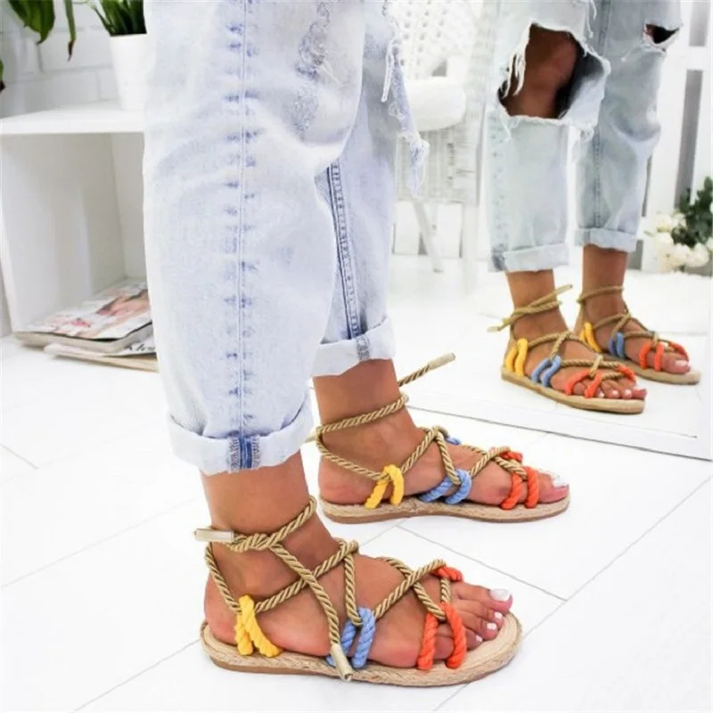 2021 сандалии женская обувь плетеная веревка с традиционным повседневным стилем и простым креативным дизайном модные сандалии женская летняя обувь Новинка