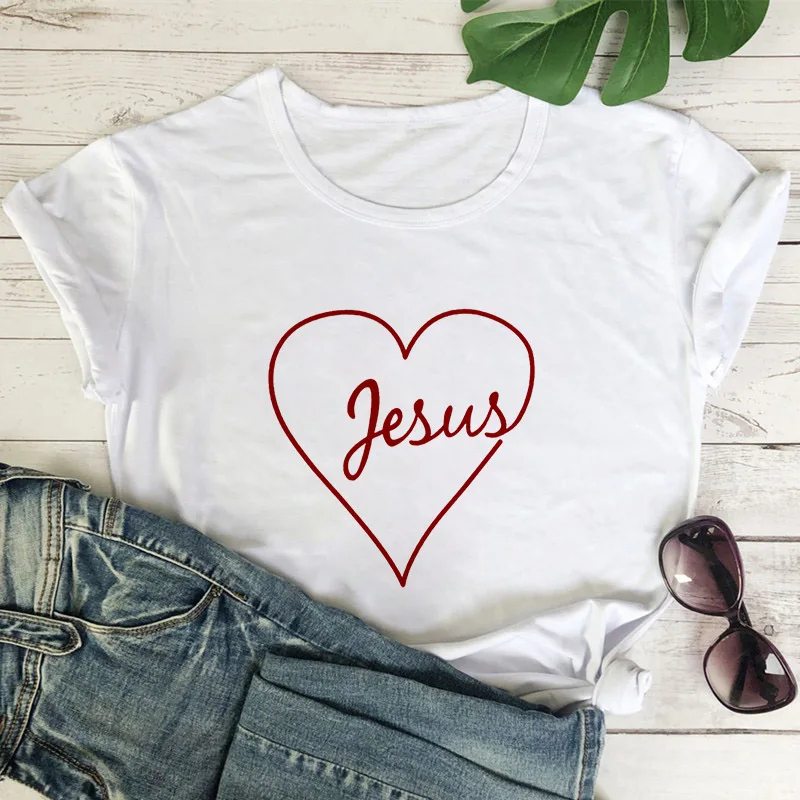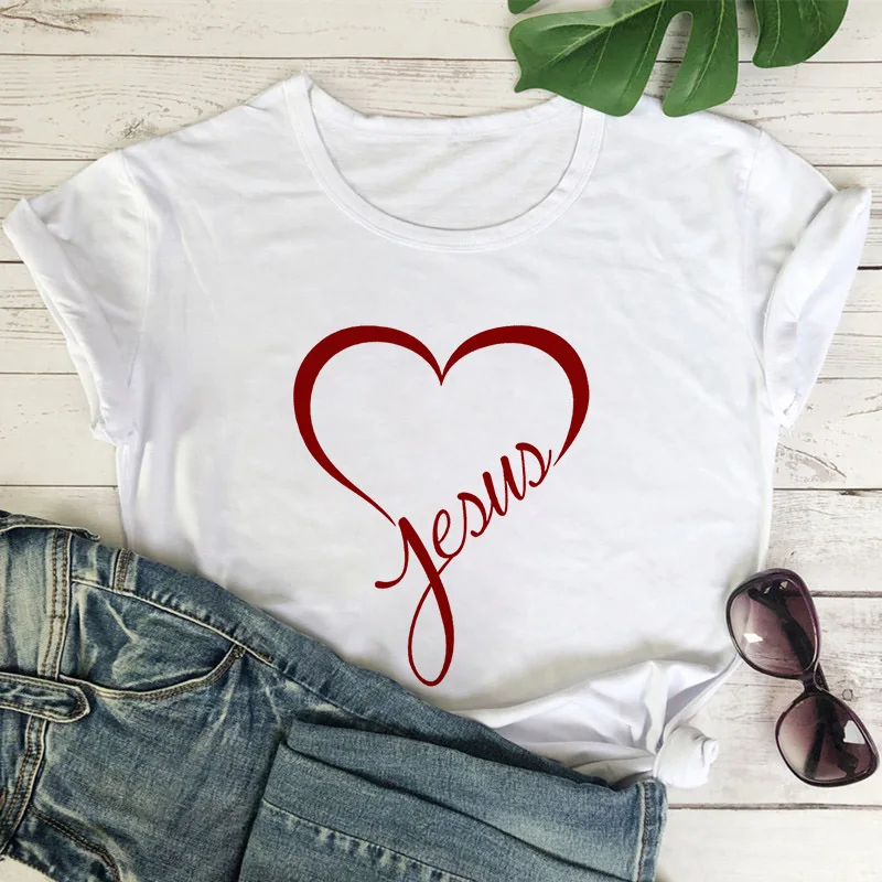 Женская футболка с принтом Иисуса и сердца, футболка с принтом христианского валенка, футболка с графическим принтом для религиозной церкви в стиле Харадзюку, весна-лето