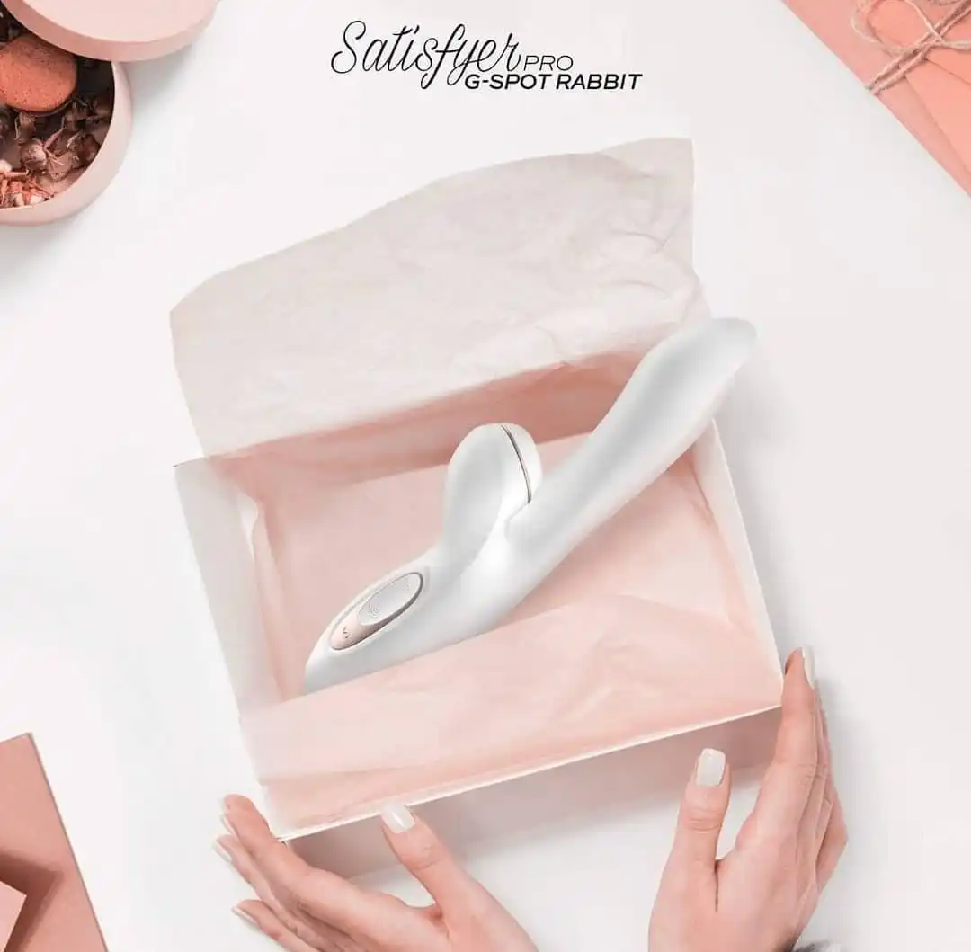 Бесконтактный клиторальный стимулятор Satisfyer Pro G-Spot Rabbit - это хай-тек вибратор, клиторальный отросток которого оснащен бесконтактным вакуумно-волновым стимулятором. Вибратор изготовлен из нежнейшего силикона, имеет удобную область управления режимами вибрации в основании игрушки. Клиторальный отросток имеет 11 доступных режимов стимуляции, а основная часть 10 виброрежимов, среди которых 3 скорости и 7 вариантов колебаний. Т.к. игрушка имеет несколько моторов, то данные режимы можно переключать независимо друг от друга. Заряжается при помощи USB кабеля (входит в комплект). Материал - силикон, пластик. Общая длина - 21,8 см, рабочая длина - 11см, диамтер - 3,5 см. Длина клиорального отростка - 4 см, диаметр - 3,2 см.