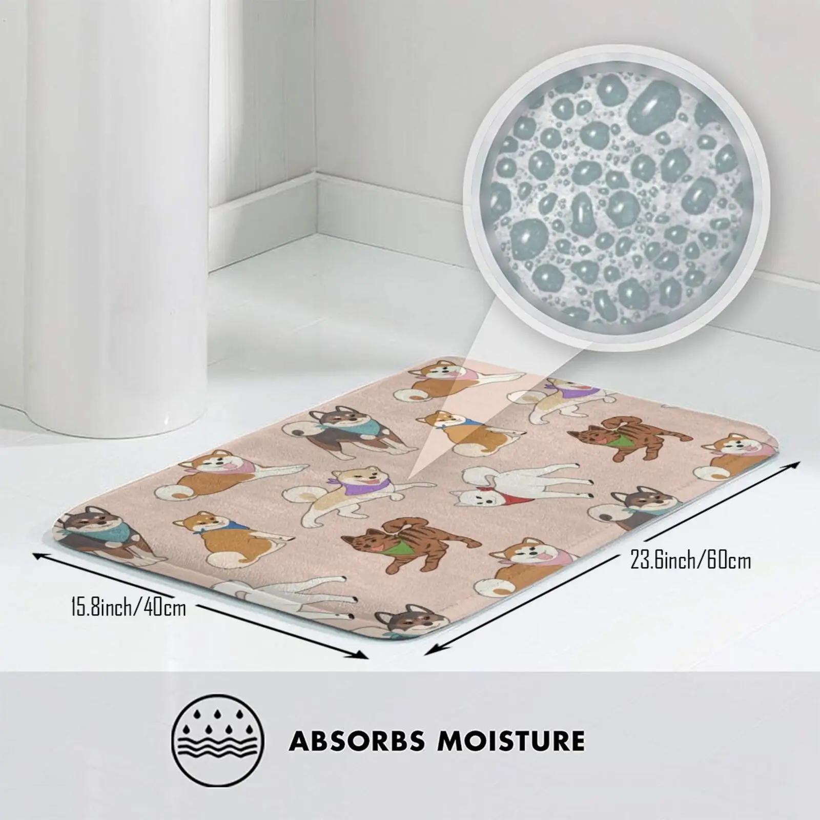 Розовый коврик Nihon Ken с рисунком, нескользящий коврик, коврик для пола, для спальни, Nihon Ken, японская собака, Сиба-ину, Сиба-Акита, Ину-Акита