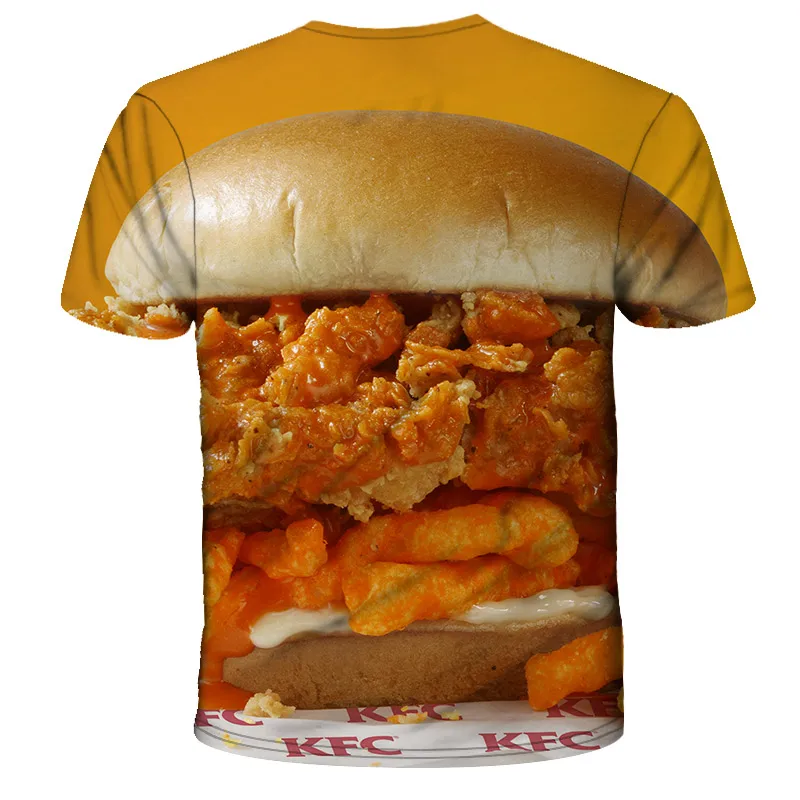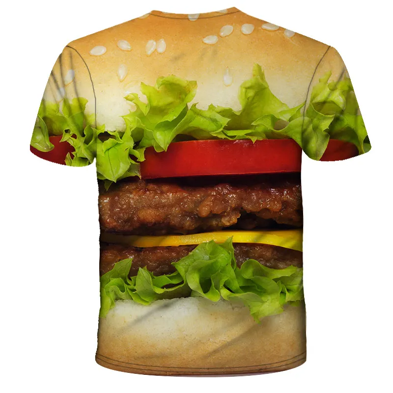 2021 сезон весна-лето Новые мужские свободные фаст-фуд гамбургер Футболка с принтом картошки-фри нейтральный хип-хоп стиль 3D печать с короткими рукавами в повседневном стиле, детские костюмы clo