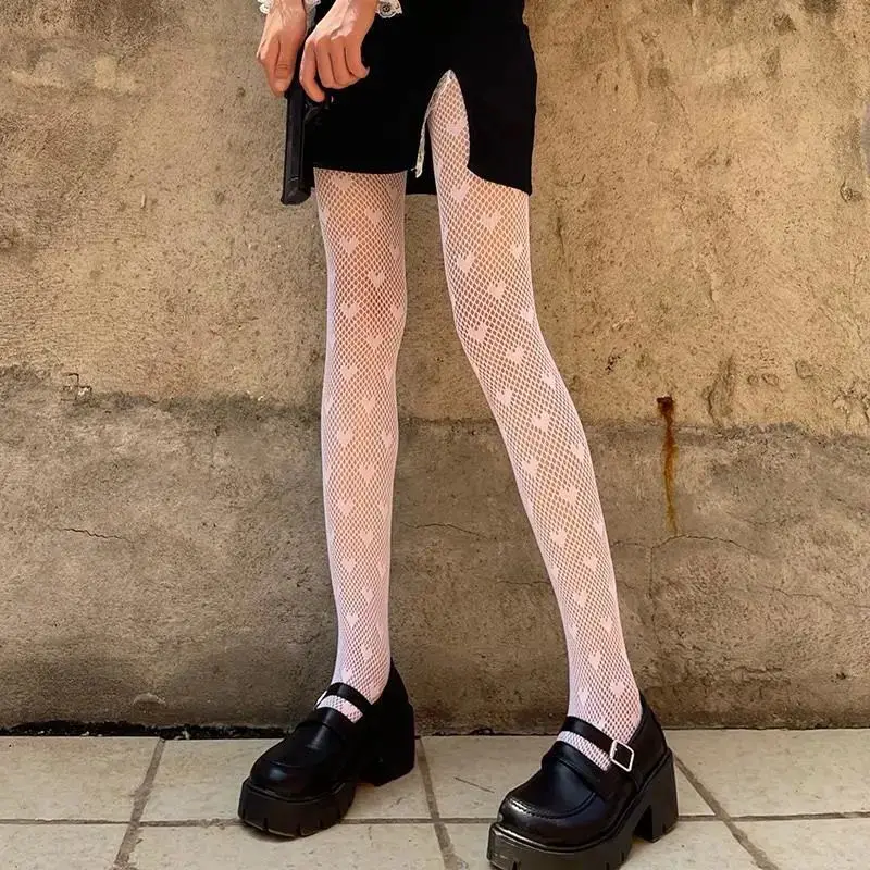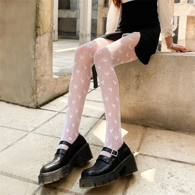Сетчатые ажурные колготки с принтом сердца, Ажурные кружевные нейло...