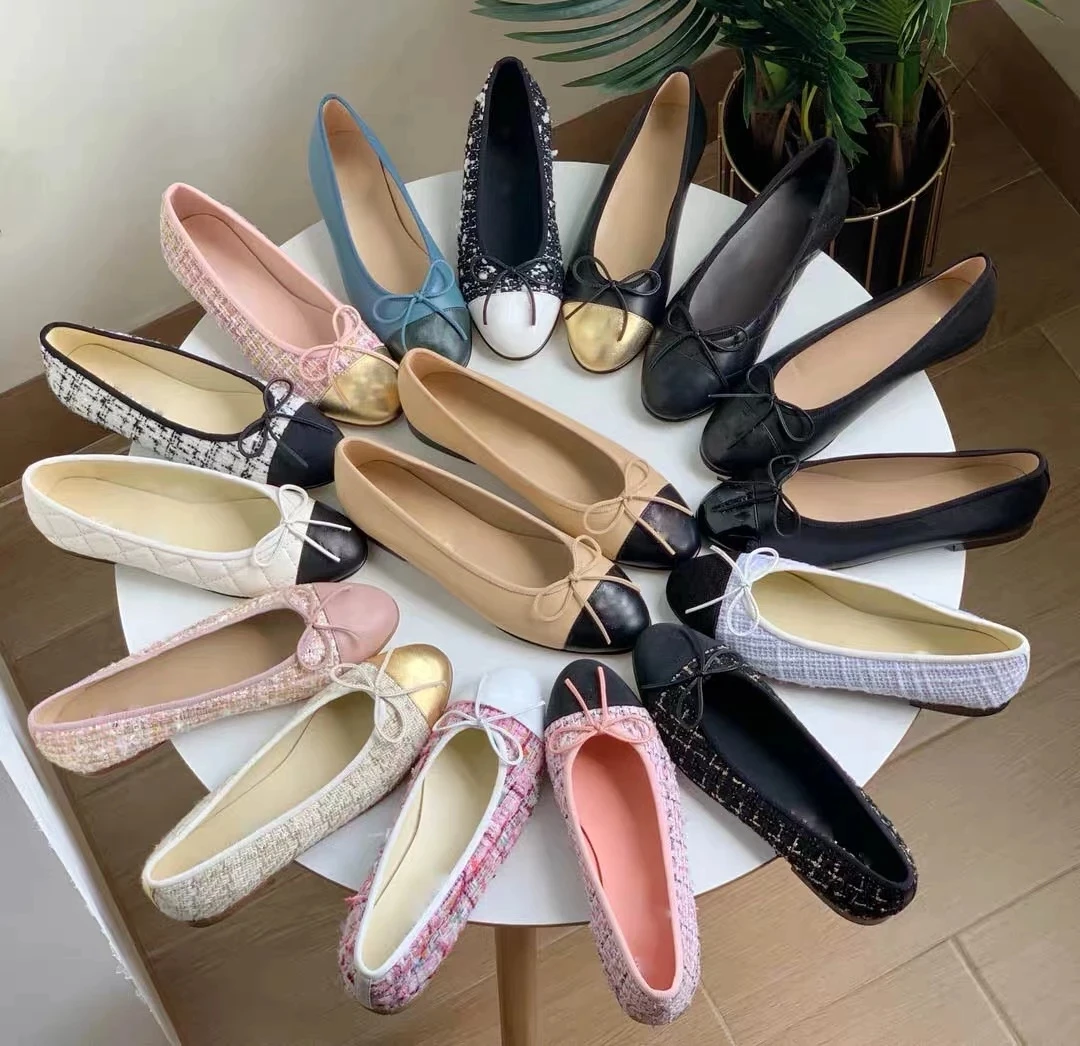 Весна 2021, новые дизайнерские туфли, Балетные кожаные туфли с закрытым носком и круглым носком на плоской подошве, стильные милые женские туфли CC размера плюс 42