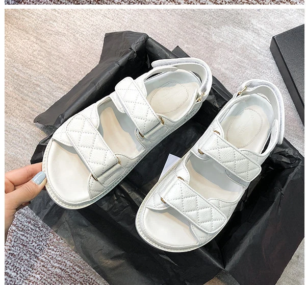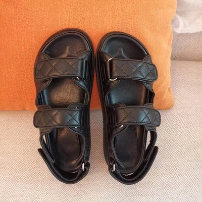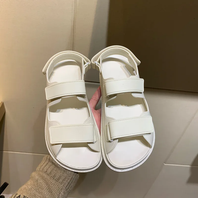 2021 новые роскошные дизайнерские женские туфли и сандалии с INS горячая кожа ребристые Velcrox CC декоративные римские пляжные Тапочки