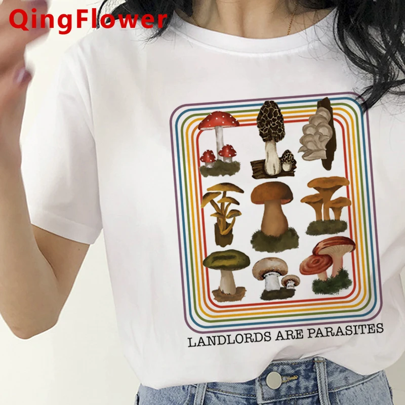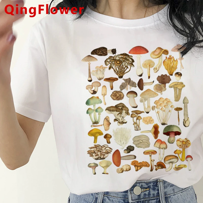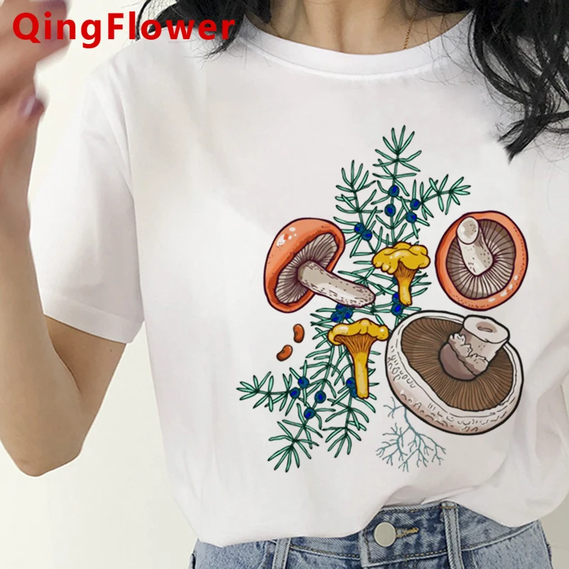 Женская футболка с рисунком грибов, белая футболка с рисунком, в ст...