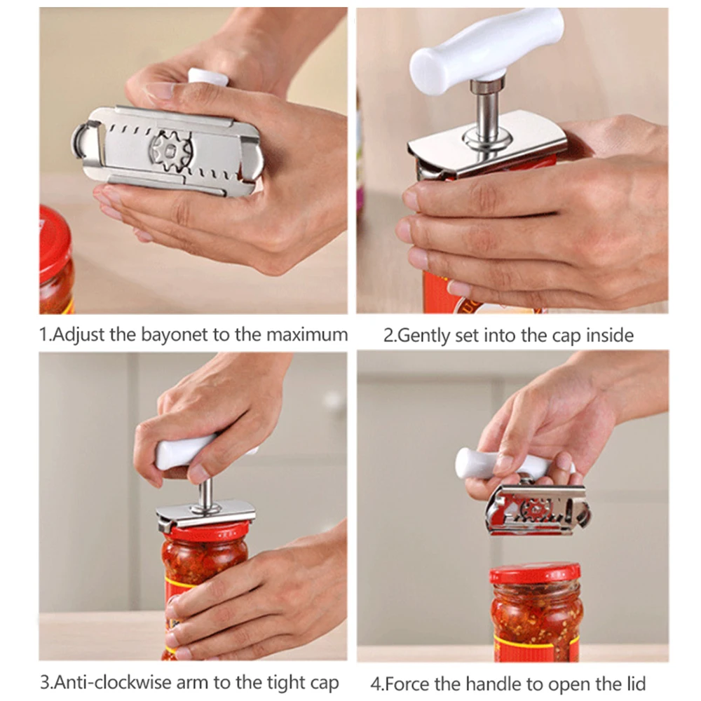 Регулируемый консервный нож-ваша лучшая кухонная рука! С помощью этого регулируемого открывателя крышки вы можете легко открыть самые плотные банки и крышки для бутылок в течение нескольких секунд!