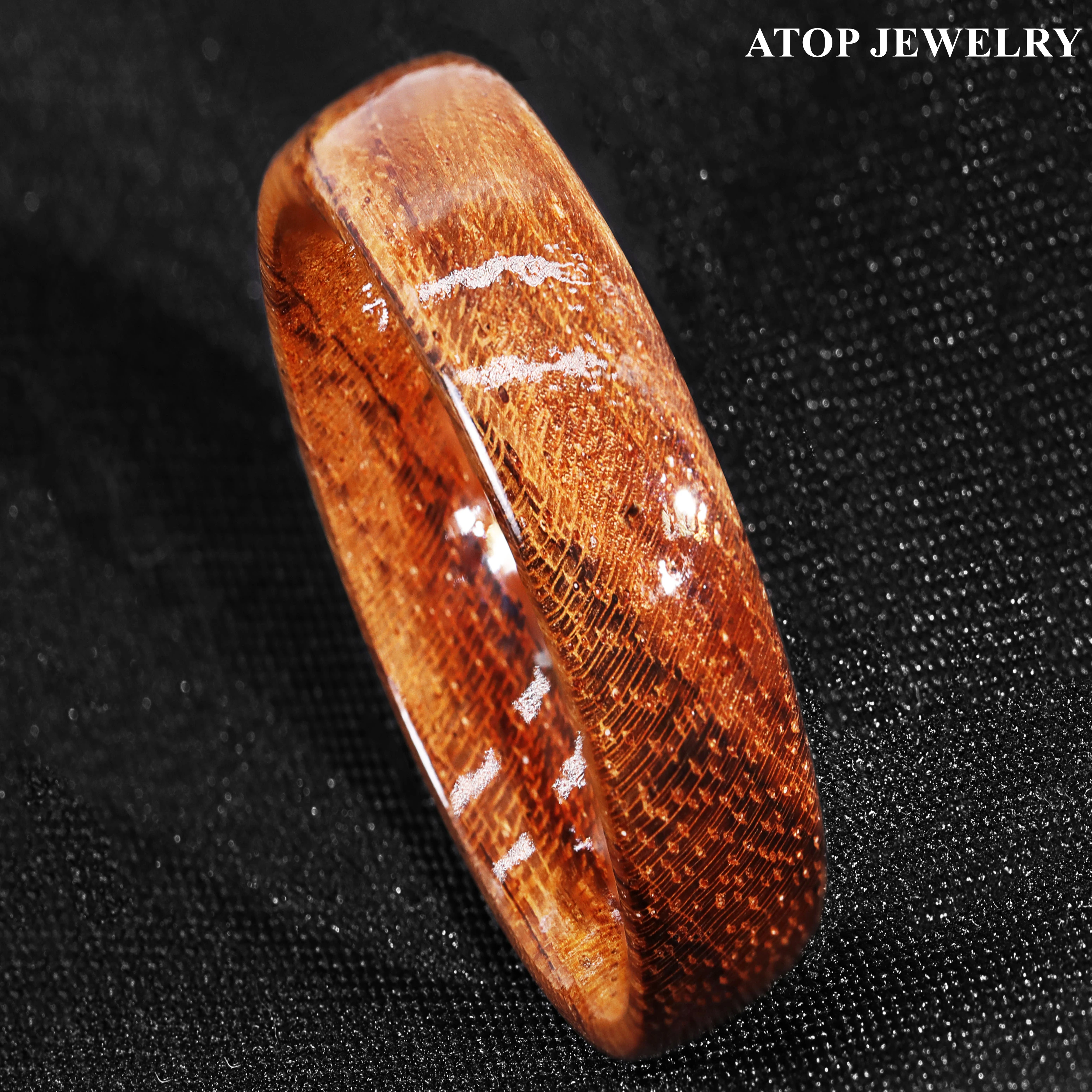 8 мм розовое золото КУПОЛ Вольфрам кольцо серебро Koa дерево инкрус...