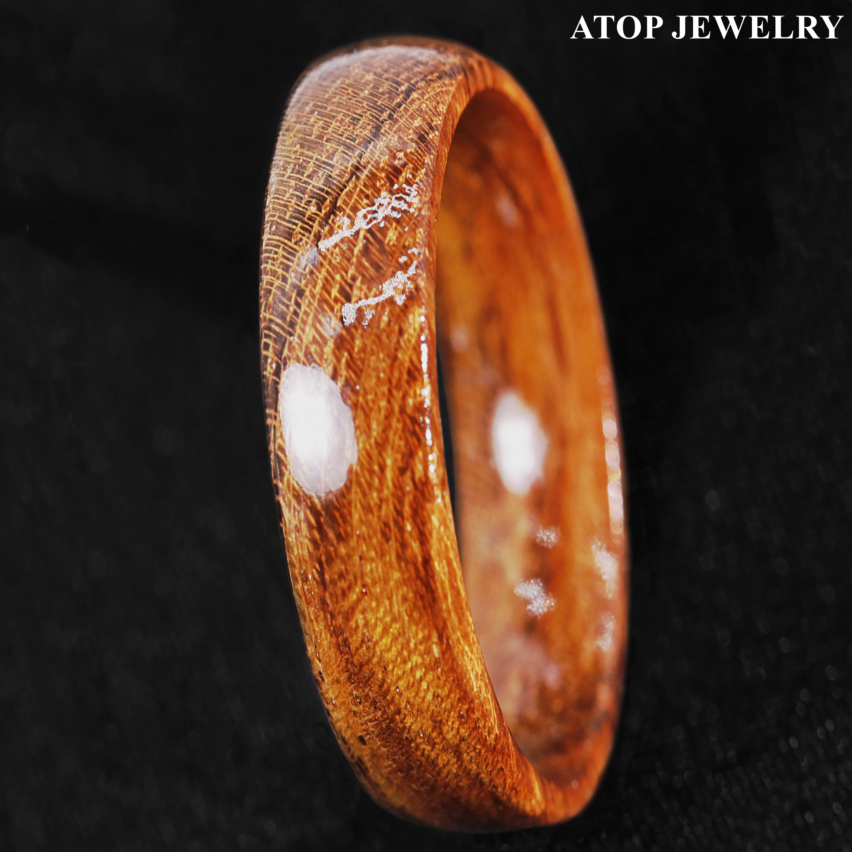 Серебряное вольфрамовое кольцо 8 мм, инкрустация ушка из дерева КоА...