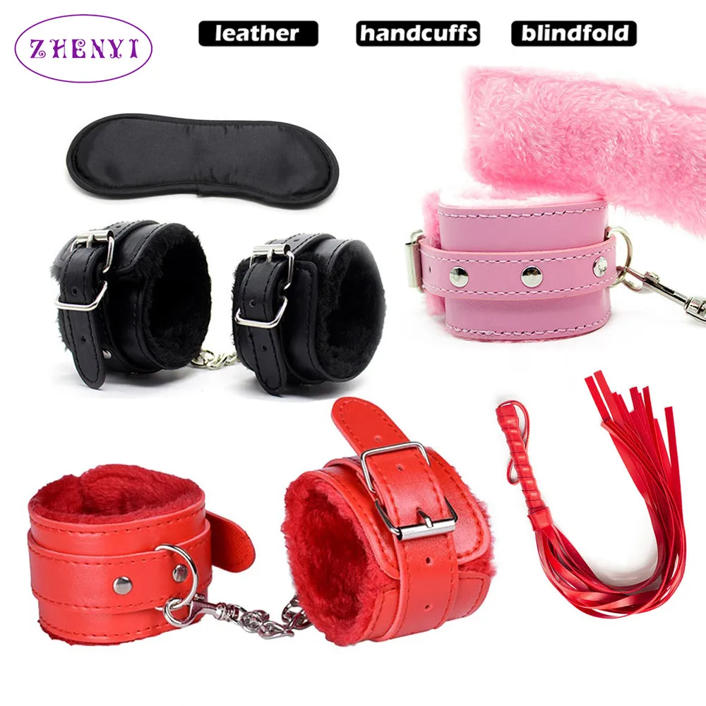 Сексуальные плюшевые регулируемые наручники из искусственной кожи, наручники на лодыжке, наручники, БДСМ, бондаж, пары, флирт, секс-игрушки для взрослых, секс-игрушки, магазин