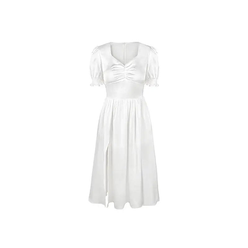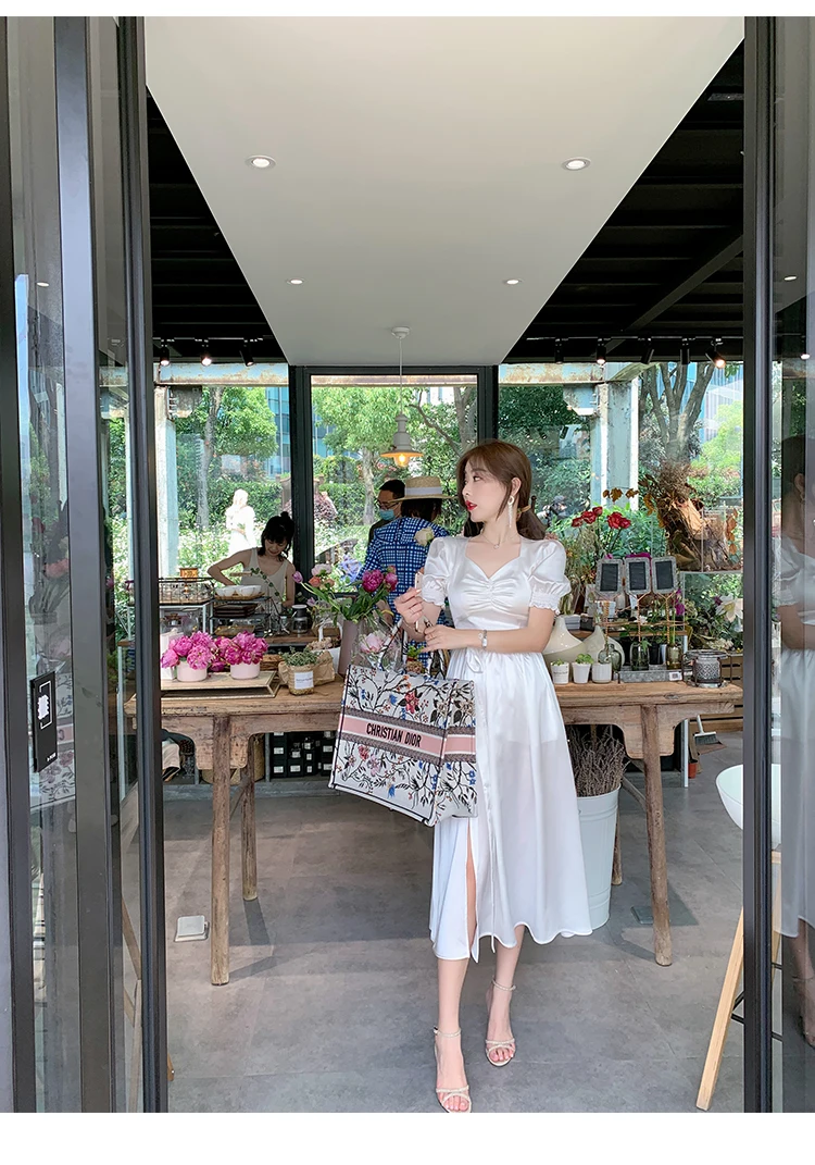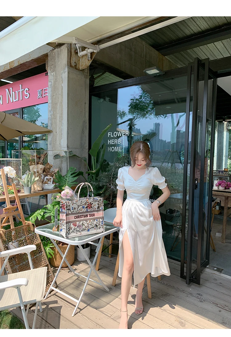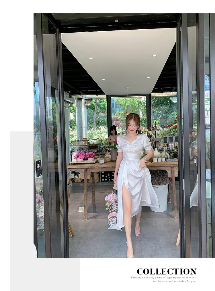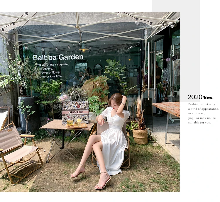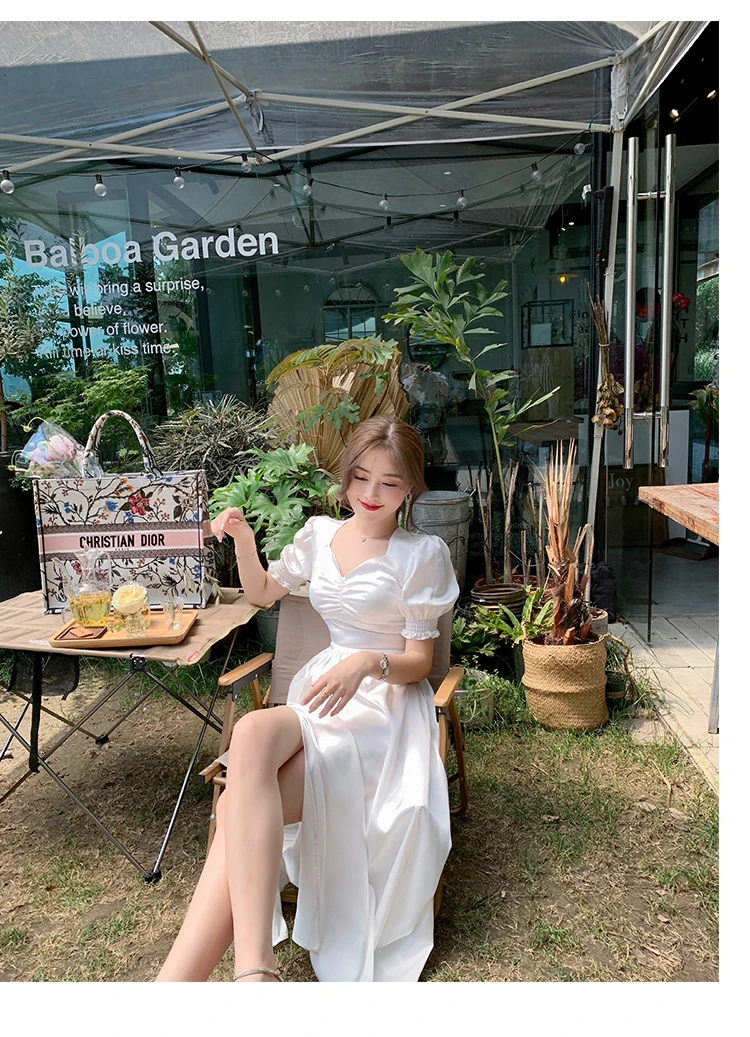 Элегантное летнее платье с пышными рукавами, женское французское сексуальное праздничное платье с V-образным вырезом, Y2K, Винтажные белые платья миди с открытой спиной в стиле бохо
