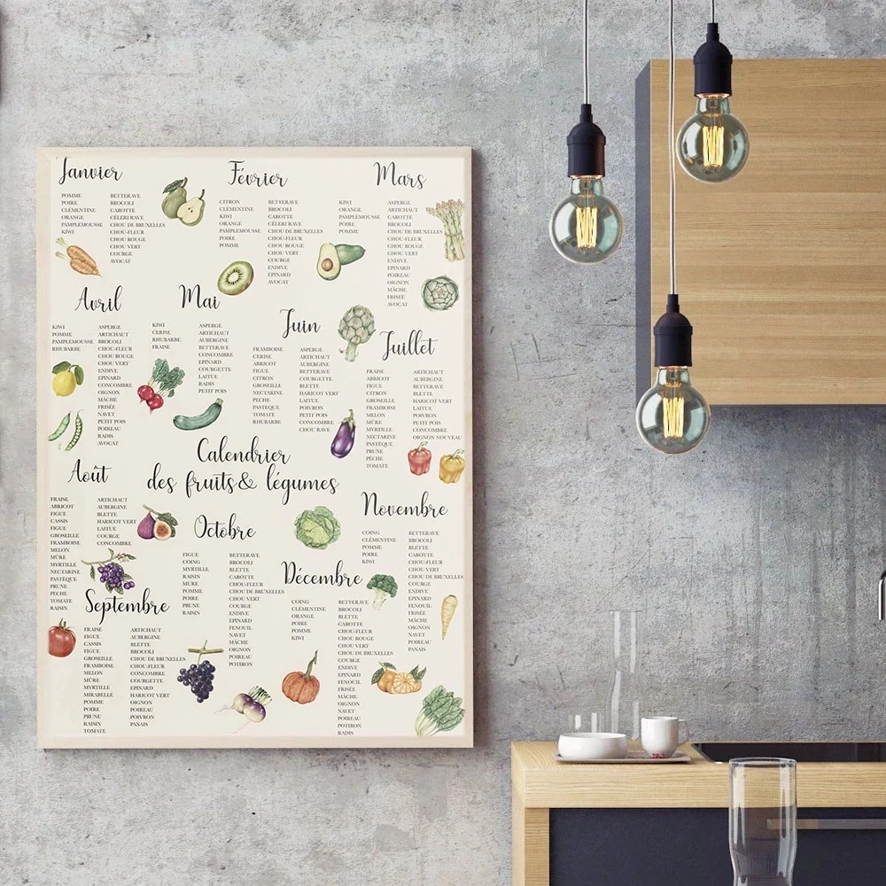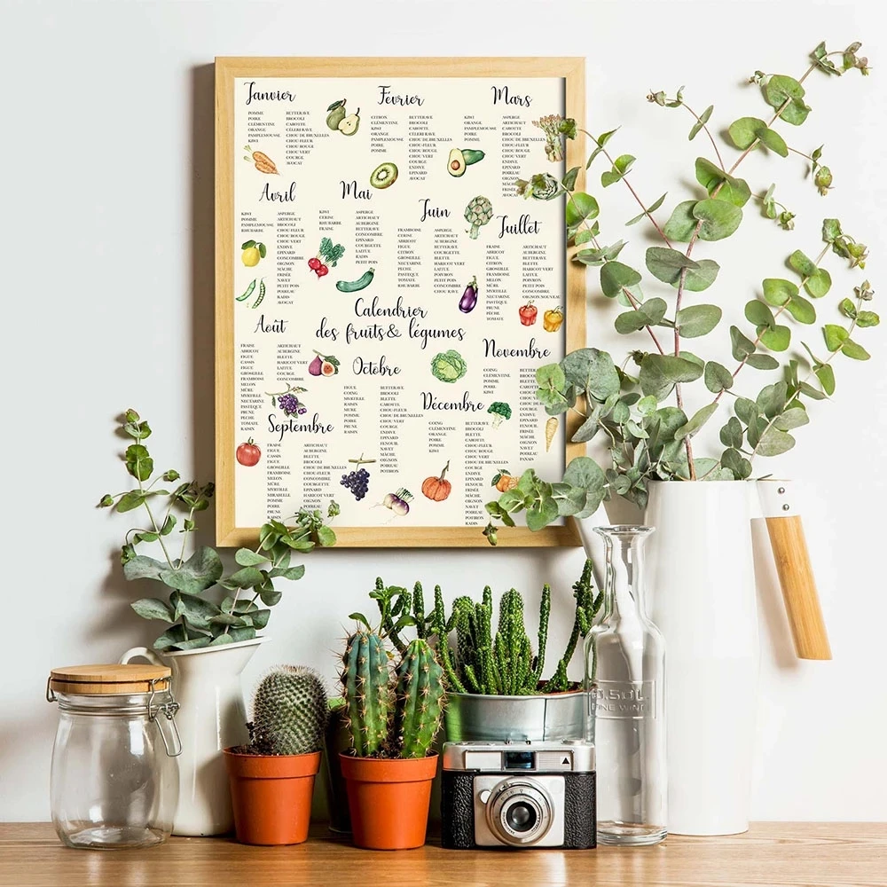 Сезонные фрукты и овощи, искусство на стене, ботаническая современная картина для кухни, домашний декор без рамки