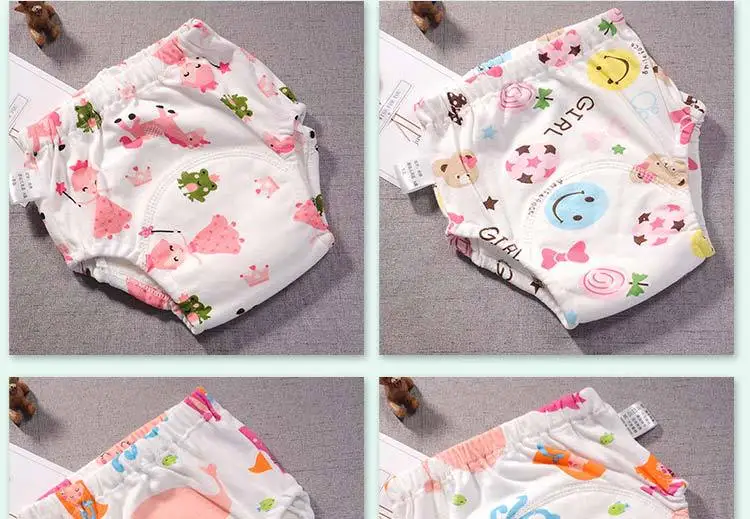 Обучающие Штаны специально разработаны для обучения детей мочиться. Обучающие брюки отличаются от обычного нижнего белья. Промежность имеет толстый и водопоглощающий и водонепроницаемый дизайн, который может хранить часть мочи, так что ребенок не будет течь, когда моча будет на одежде и на земле. Везде только мокрая промежность. Если промежность влажная, ребенок почувствует дискомфорт. Спустя долгое время ребенок будет знать, что снимает штаны и говорит маме писаться и медленно учится писать самостоятельно.Хлопковые Многоразовые детские подгузники, можно стирать в горшке, тренировочные штаны, детские подгузники, детские штаны, трусики для новорожденных, многоразовое нижнее белье, летние шорты