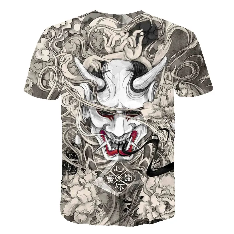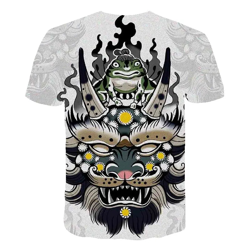 Футболки в японском стиле Харадзюку, уличная одежда с 3D рисунком животных для девушек, мужчин и женщин, модная футболка большого размера с самураем, топы, унисекс Одежда