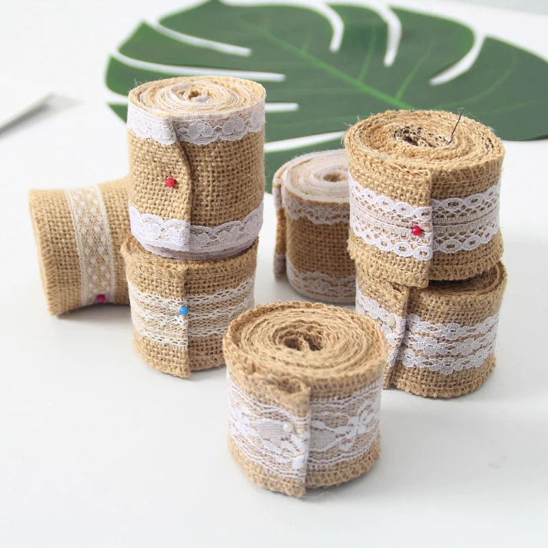 2 метра/рулон, натуральный кружевной джутовый рулон, свадебная одежда, украшение, сделай сам, рождественские товары для вечеринки, гессианская лента для рукоделия, 5 см