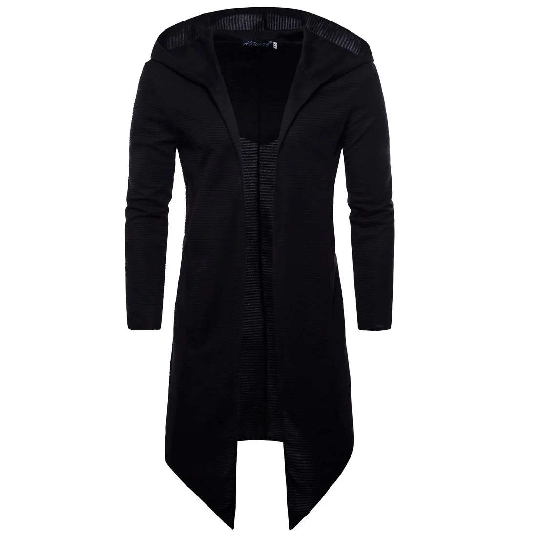 Толстовка мужская с капюшоном, длинное пальто с расстегнутыми пугов...