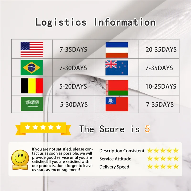 3. Ожидаемая дата доставки будет зависеть от таможни, погоды и т. д. иногда это может занять немного больше времени, чтобы получить, пожалуйста, свяжитесь с нами, когда вы не получили посылка, чтобы продлить время защиты вашего заказа.