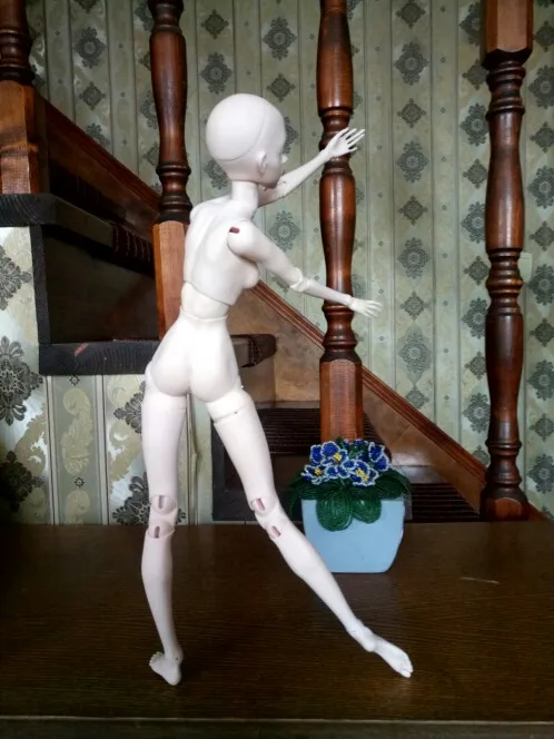 Куколка необыкновенная! Я очень довольна! Тело гибкое, послушное, имеет много возможностей для красивого позирования. Натяжка хорошая. Стоит сама, позы держит. Доставка заняла 16 дней!!! Спасибо продавцу. Глазки положили 10 мм, серые, ирис крупный, ей не подходит. В комплекте два вида ступней, туфли, пластилин и магнитик. Очень качественно проработаны ступни ног, в месте крепления - выемка, крючок цепляется за металлическую проволоку, продетую в ступне. Очень удобно менять ноги! Ювелирные пальчики, тончайшая работа. Рекомендую к покупке однозначно!