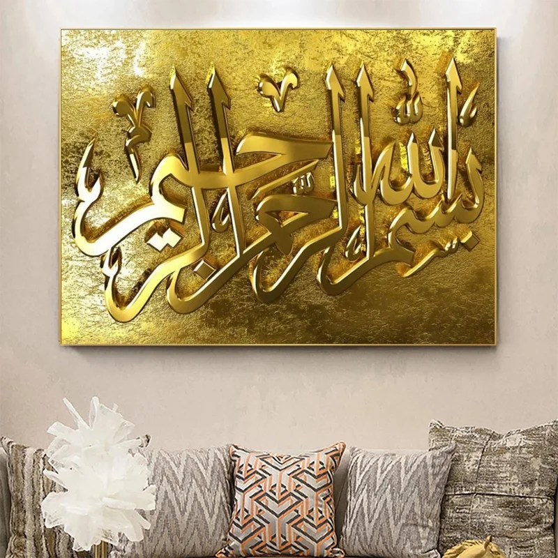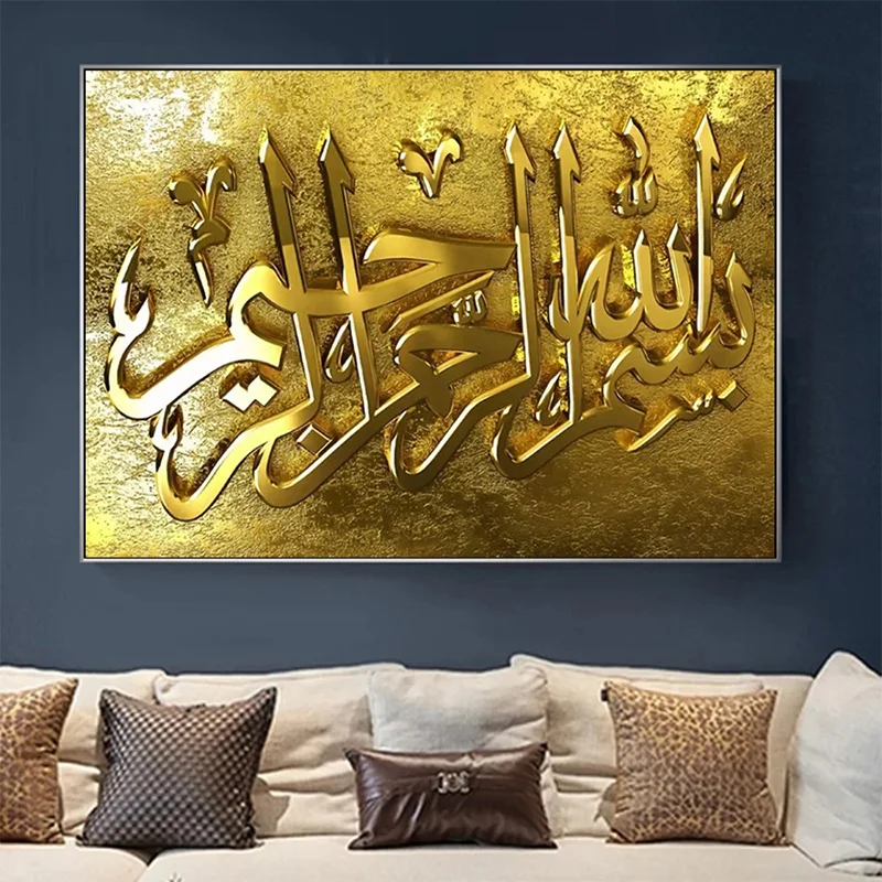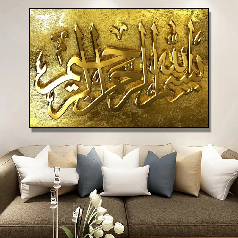 Мусульманская роспись на холсте Bismillah, мусульманская фотография, плакат и печать на стене, печать для гостиной, домашний декор, подарок