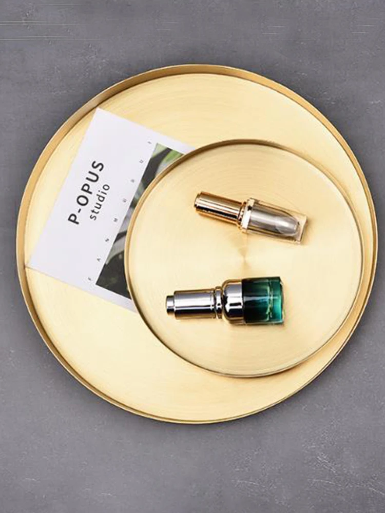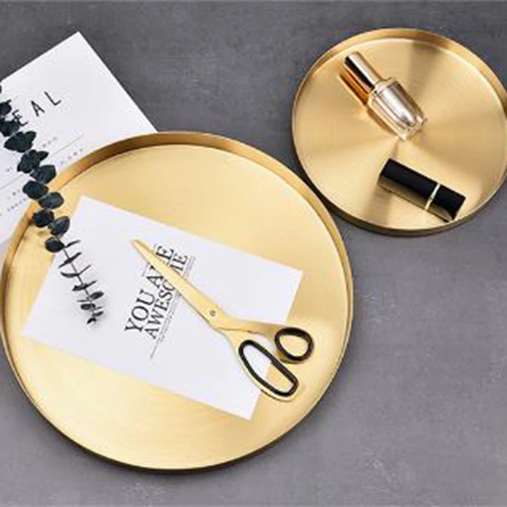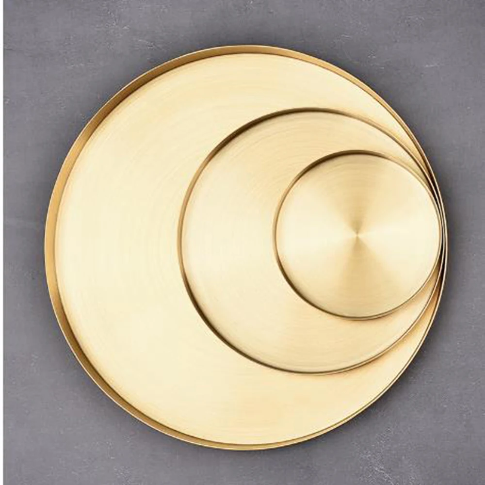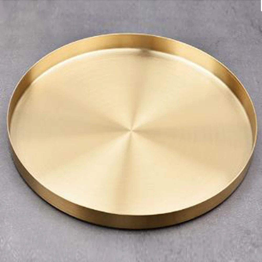 Золотой кухонный лоток для хранения из нержавеющей стали, органайзер для экономии места, пластина для ювелирных изделий, нежная круглая для косметики для ванной комнаты
