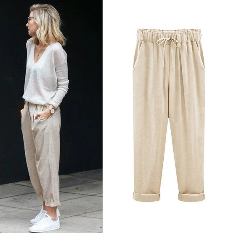 Женские шаровары CHSDCSI, женские свободные повседневные льняные брюки