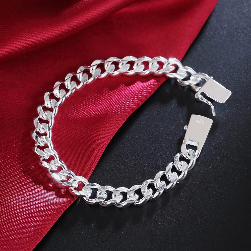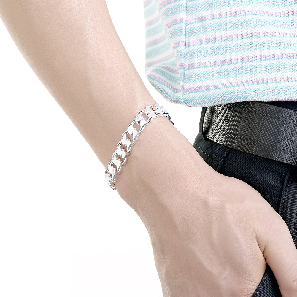 Браслет Figaro мужской, серебряный, 10 мм, 20 см