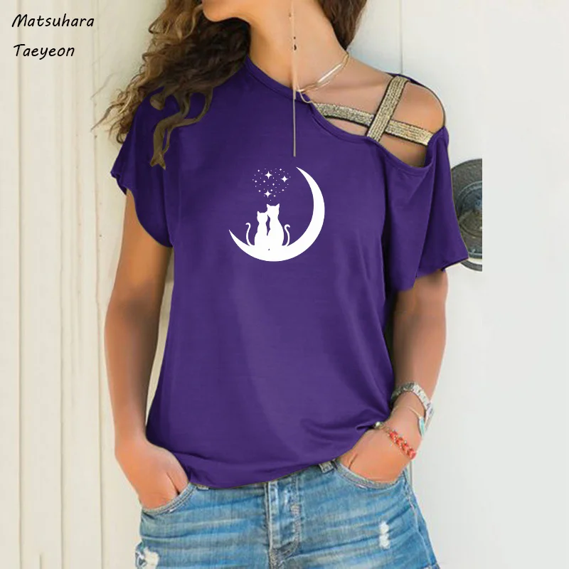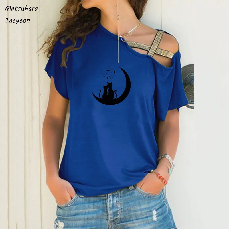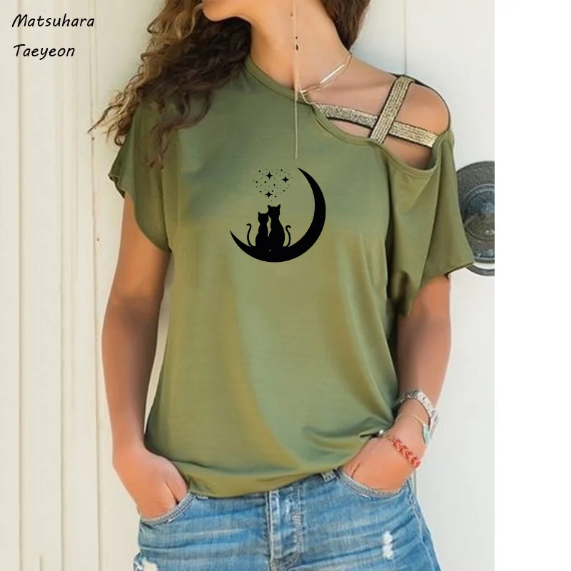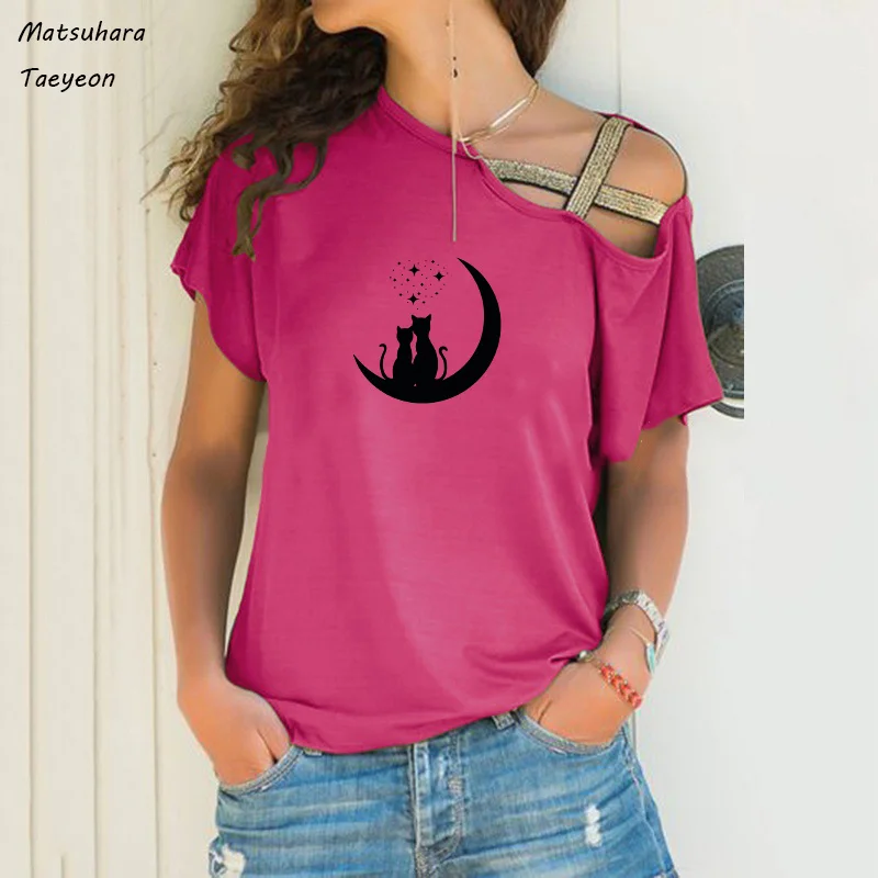 Симпатичные женские футболки с изображением кота, облегающих боковых звезд, футболка с принтом и коротким рукавом, сексуальные топы, Женская Повседневная футболка