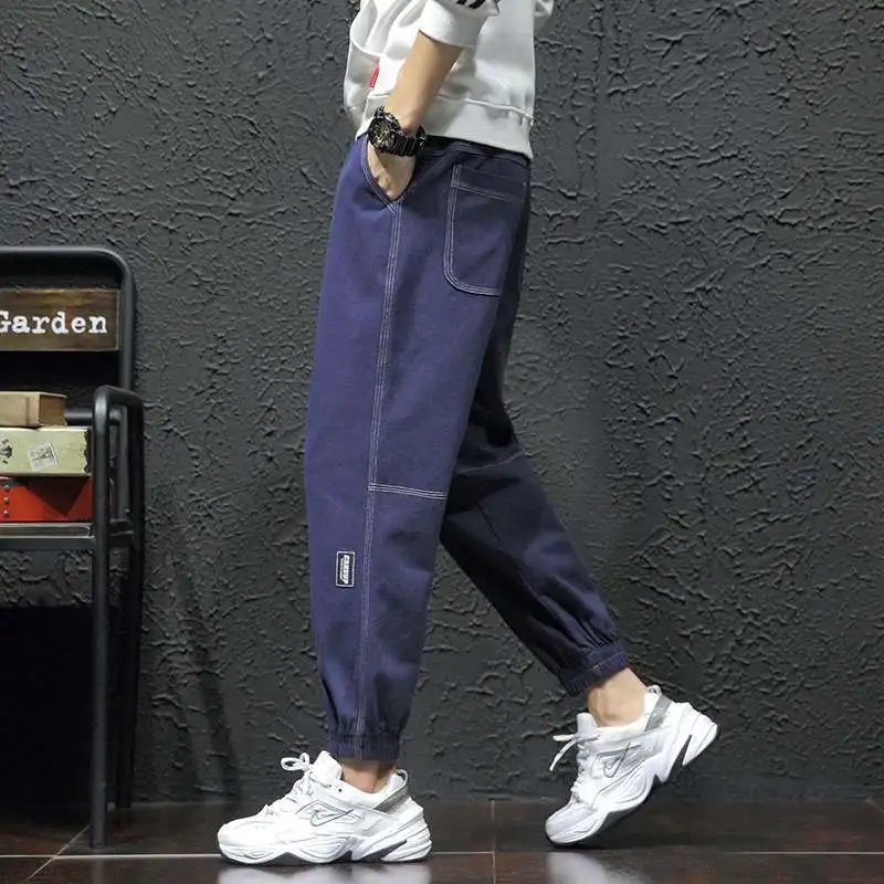 Мужские льняные брюки до щиколотки, спортивные штаны в стиле хип-хо...