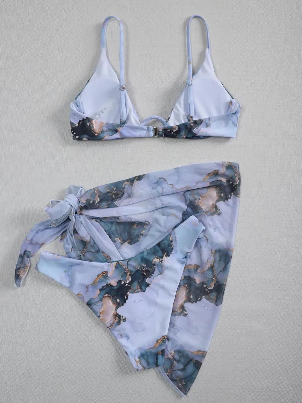Новинка 2022, пикантный мраморный купальный костюм с принтом, спорт...