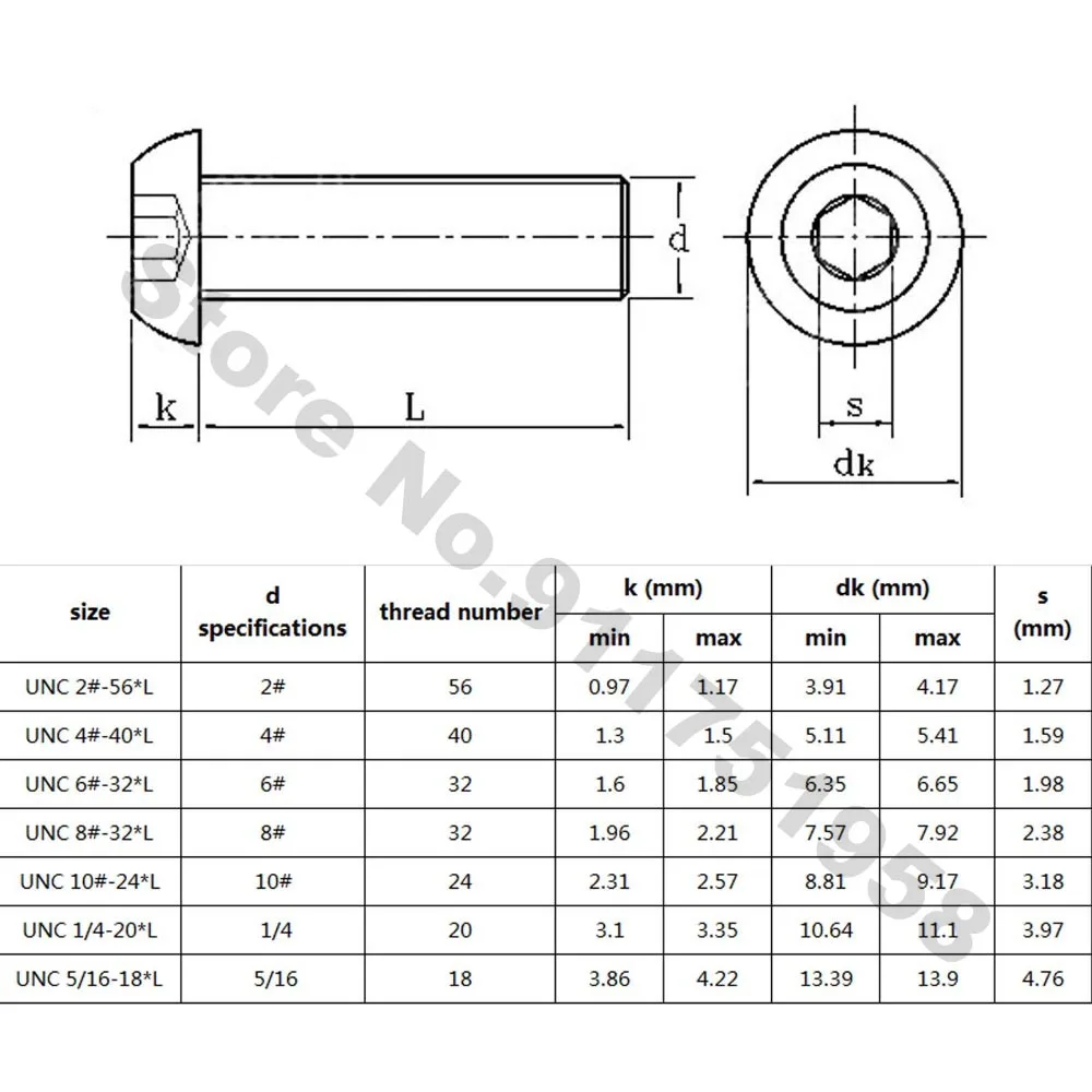 Материал: нержавеющая сталь 304 (A2-70)Размер:UNC 2 #-56UNC 4 #-40UNC 6 #-32UNC 8 #-32Длина резьбы: 3/16 " - 1"