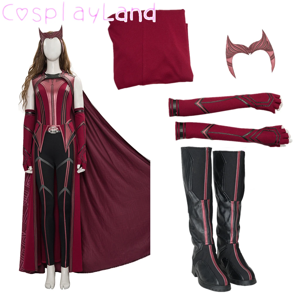 Супергероиня костюм Ванда Алая костюм ведьмы для косплея Maximoff красный костюм с маской обувь на высоком каблуке карнавальные костюмы на Хэллоуин