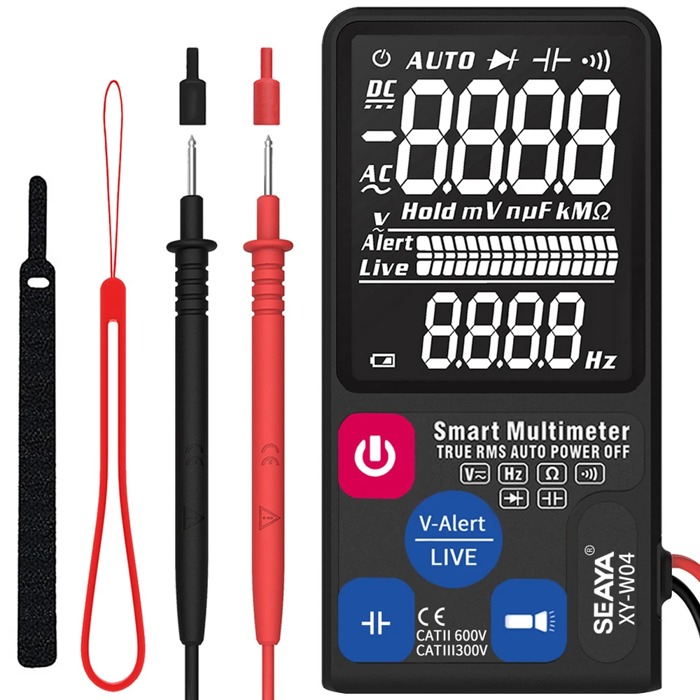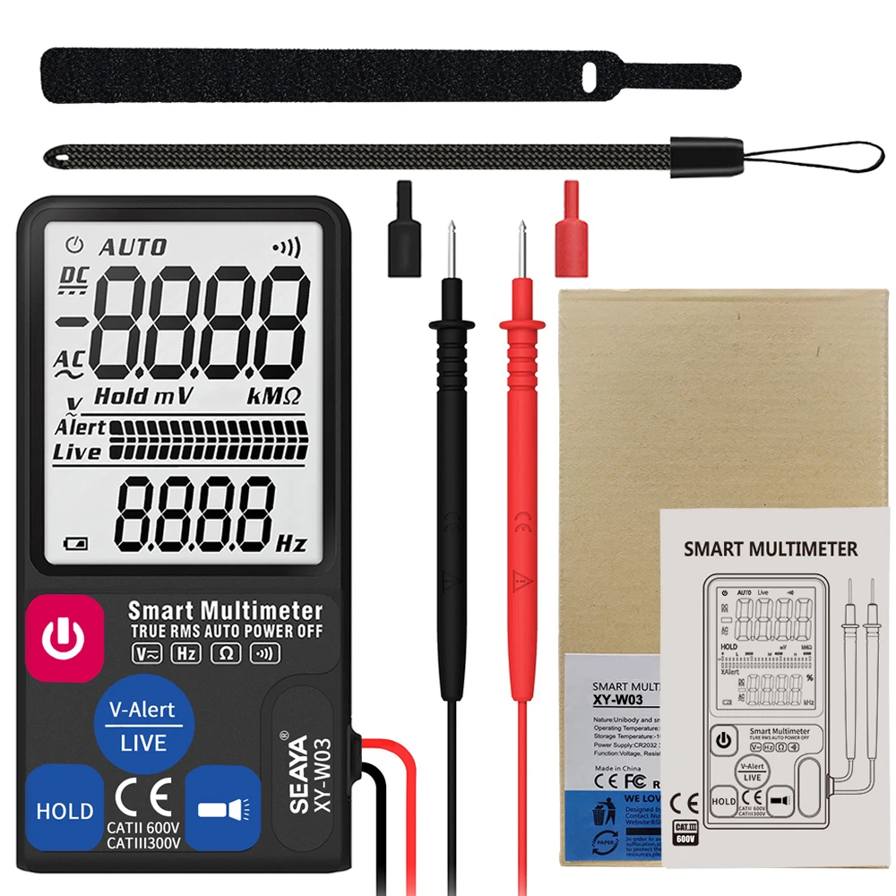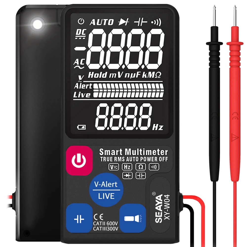 [Простой/удобный/простой в использовании]: Разработанный с помощью умной технологии Seaya, этот мультиметр может автоматически идентифицировать протестированные параметры и выбрать требуемый диапазон. Мультиметр с дизайном зондов позволяет тестировать безопасно и эффективно-нет необходимости подключать и выключать зонды, которые не только могут сэкономить время обучения и тестирования, но и предотвратить неправильное включение портов.